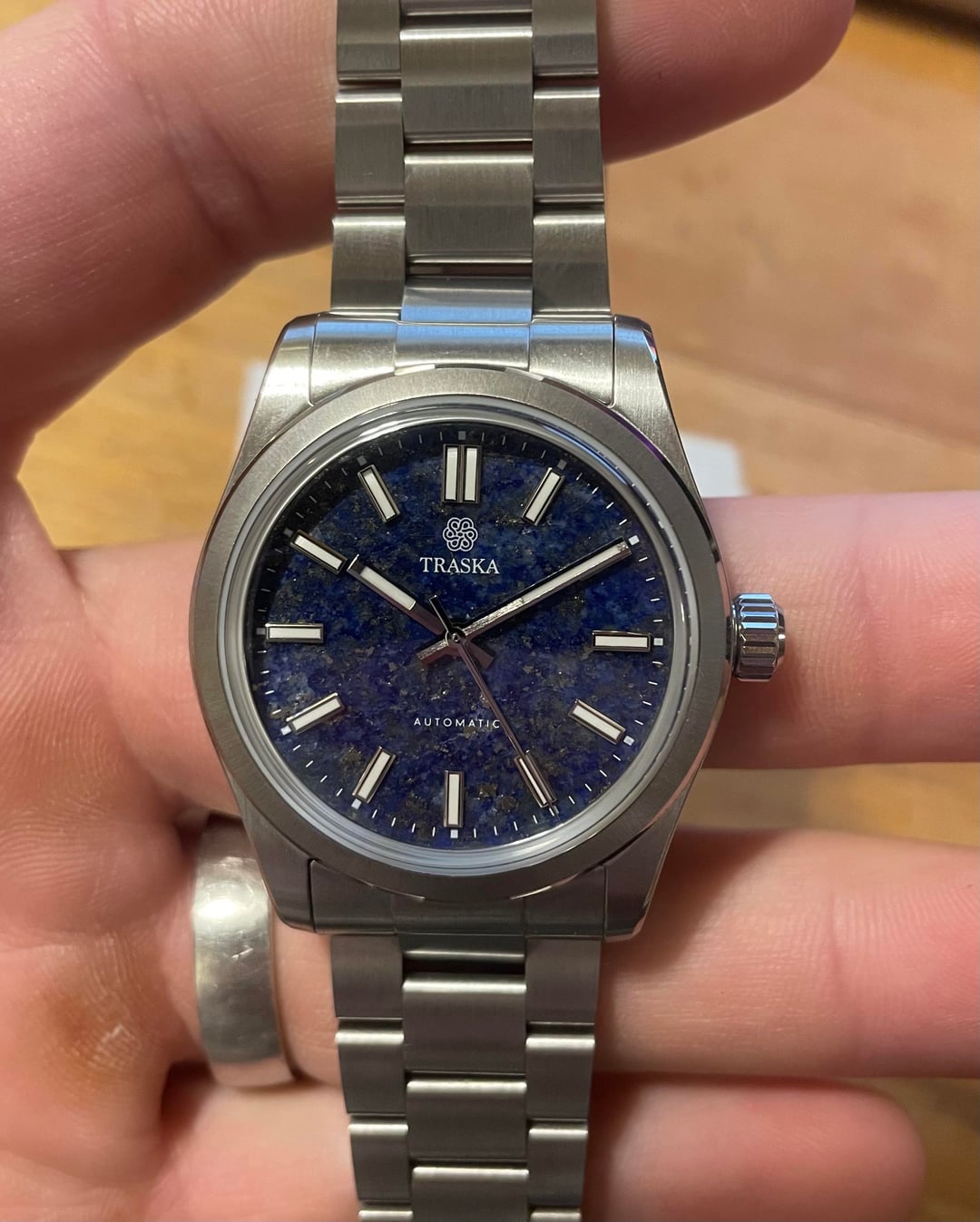 Putting up for sale this limited edition traska commuter 36mm with the beautiful lapis lazuli dial. Traska made an incredibly limited run of stone dial watches with only 10 watches made in each size (34/36/38mm). These are effectively impossible to find or buy. I purchased this one several months ago, but i have hardly worn it since I realized that i prefer 38-40mm sized watches. Watch is in mint condition, not one scratch on it, both because it hasn’t been worn, but also thanks to the specialized traska hardness coating, that ensures this watch stays looking flawless. I purchased this watch for $1400 and I am looking to let it go for the same price . I am open to reasonable offers since i do want to see this watch worn. Watch comes with full links, traska leather case, boxes and warranty.