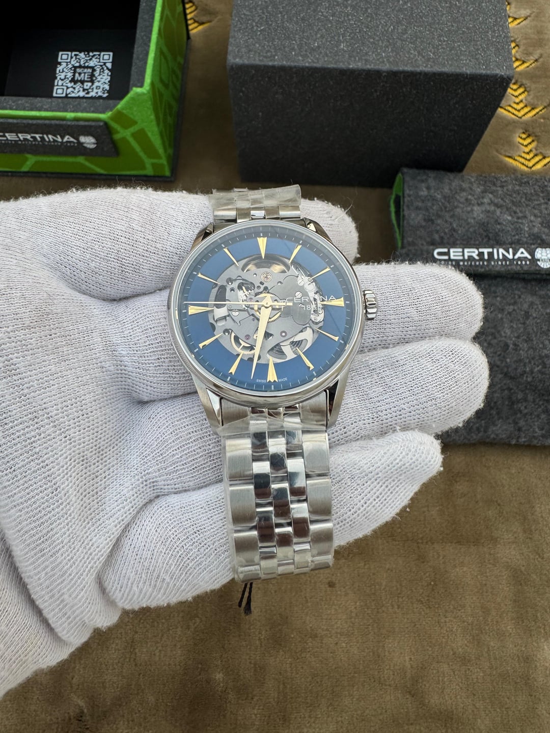 Certina DS-1 Skeleton (Ref. C029.907.11.041.00) 40 mm ETA Powermatic 80.631 Trimming down! It has an exceptional beautiful skeleton blue dial, an elegant Swiss piece Watch comes as full kit, Brand new never worn includes outer inner box papers dated warranty cards, bought originally from AD collecting dust need to take out Price $850 negotiable payment paypal F&F Shipping: Free shipping to US Happy to answer any questions or inquiries thanks for looking my listing
