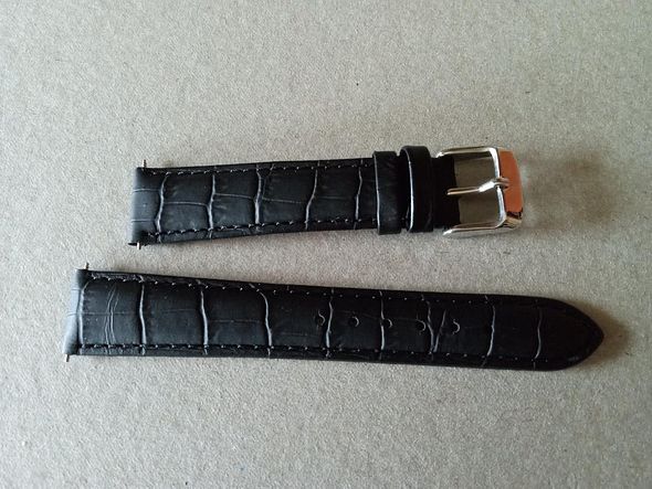 Lucien Piccard – brand new padded black leather with croc design at 18mm with steel tang