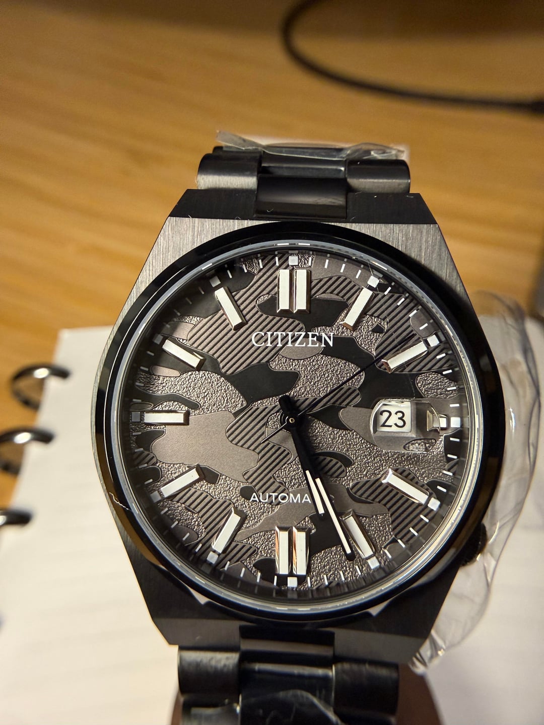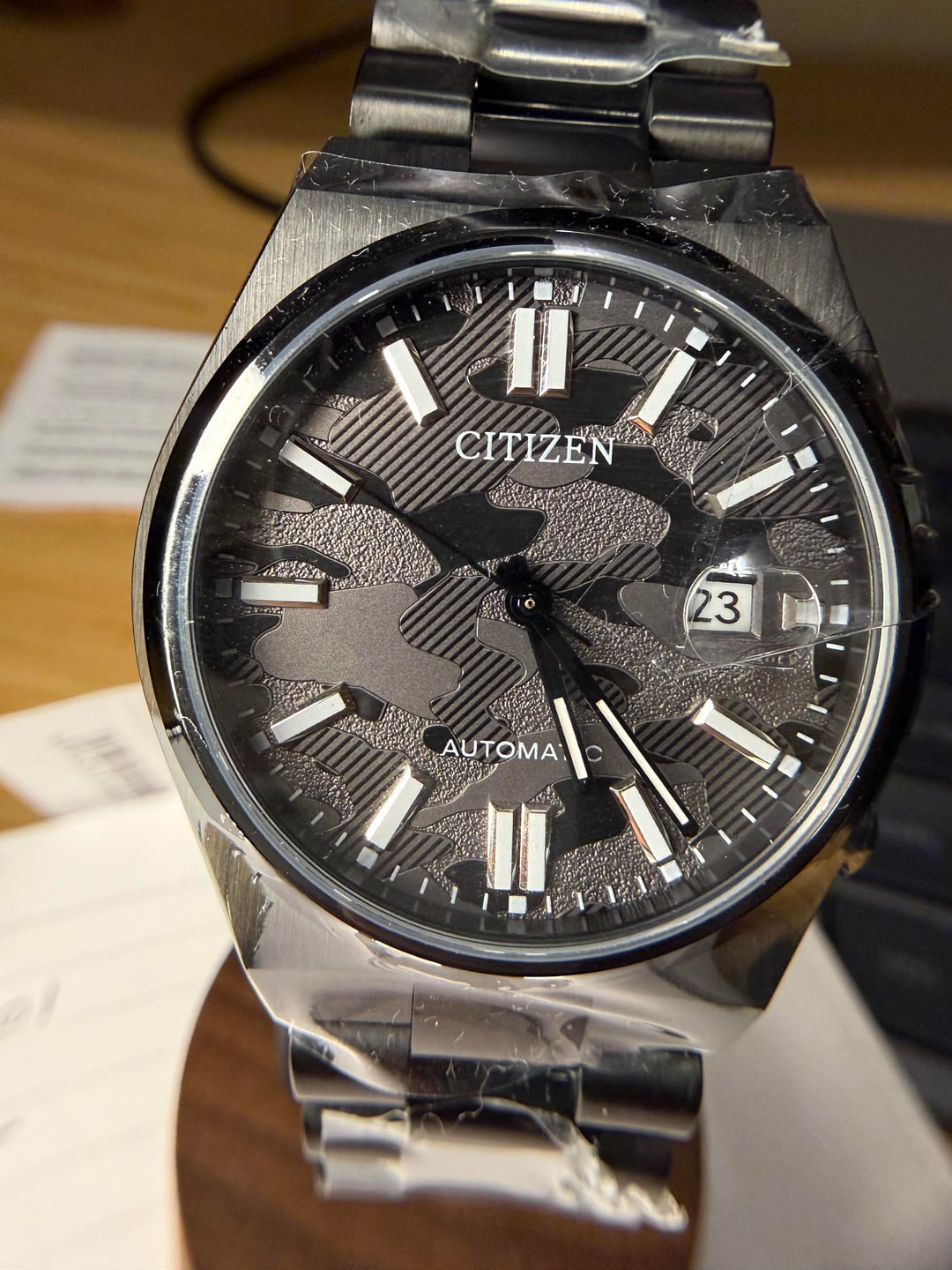 Selling my Citizen NJ0155-87E “Tsuyosa” automatic — the highly popular integrated bracelet model that’s been nicknamed the Citizen PRX. This is the black dial version with the Miyota automatic movement and display caseback. I originally planned to keep it, but I’m selling a few unused pieces to fund a Grand Seiko during my upcoming trip to Japan. Condition: Brand new in box — still in factory wrap, never sized or worn. Details: • Model: Citizen NJ0155-87E • Movement: Miyota 8210 Automatic (40-hour power reserve) • Case Size: 40 mm stainless steel • Dial: Gloss black with applied indices and date window • Crystal: Sapphire • Bracelet: Integrated stainless steel • Water Resistance: 50 m • Caseback: Exhibition (see-through) Includes: ✅ Original Citizen box ✅ Warranty card and papers ✅ Unworn, unsized, full kit Asking Price: $289 shipped (CONUS) — priced below retail for a brand-new, full-set example. Payment: PayPal Friends & Family, Venmo, or Zelle accepted. Shipping: USPS Priority, insured, signature required. Location: Chicago, IL Trades: No trades — selling to fund a Grand Seiko purchase. Why it’s a great deal: This one is brand new, full kit, and priced at $289 shipped — an unbeatable deal for someone looking to grab a Tsuyosa below market. Timestamp and detailed photos available upon request. First clean offer at $289 shipped takes it — fast, insured shipping and a smooth, transparent transaction guaranteed.