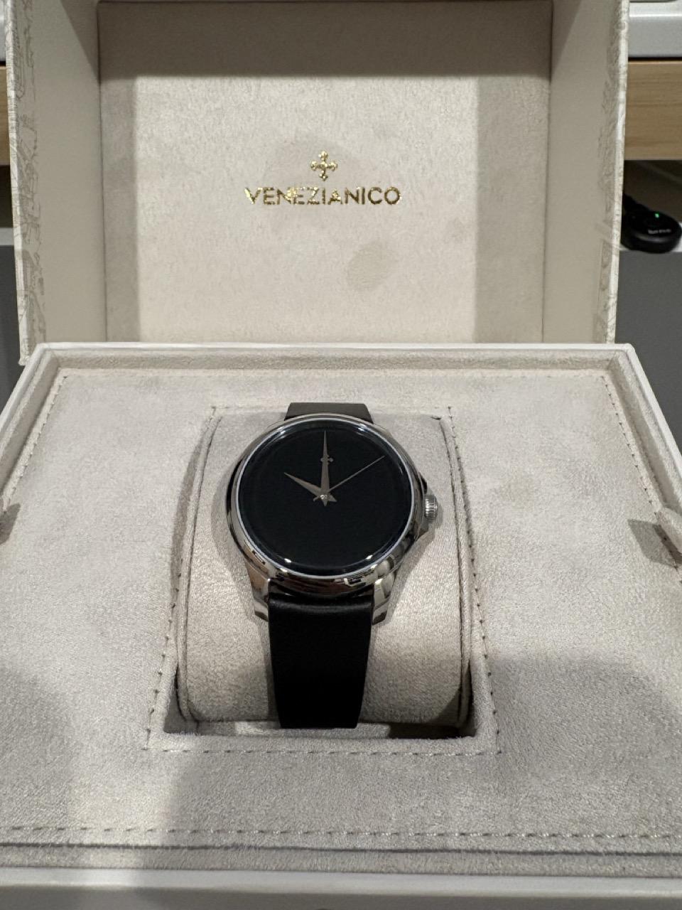 **[WTS] Venezianico Redentore Ultrablack 40mm** * **Album:** https://imgur.com/a/9nUGH1n * **Timestamp:** https://imgur.com/1EldQzL Up for sale is my **Venezianico Redentore Ultrablack 40mm** (Ref. 1221510) – a stunning Italian microbrand piece with one of the most unique dials you'll ever see. I won this watch at the Hours and Minutes watch event in Culver City this year, and while it's gorgeous, I'm consolidating my collection and trying to fund my white whale. **What Makes This Special:** The dial uses **Musou Black™ paint**, which absorbs 99.4% of light – creating an absolute black that has to be seen in person to be believed. It's a visual experience unlike any other watch. The engraved caseback depicts cosmic vastness, continuing the "deep space" theme. **What's Included:** * Venezianico Redentore Ultrablack 40mm * Original box * Original brochure/papers * Black leather strap **Specifications:** * 40mm stainless steel case * Seiko NH35A automatic movement * 41-hour power reserve * Musou Black™ dial (99.4% light absorption) * Luminous hands and markers * 50m water resistance * 20mm lug width **Condition:** Excellent condition with minimal wear (if you can even call it that, I have never worn it outside my home). Crystal is clean, movement running accurately. This is a unique piece from a respected Italian microbrand inspired by Venetian architecture. **Price:** $440 shipped CONUS (lower 48 only) via USPS Priority Mail with insurance and tracking. PayPal F&F or Venmo preferred (G&S +3% with references). Not looking for trades at this time. Happy to answer questions or provide additional photos!