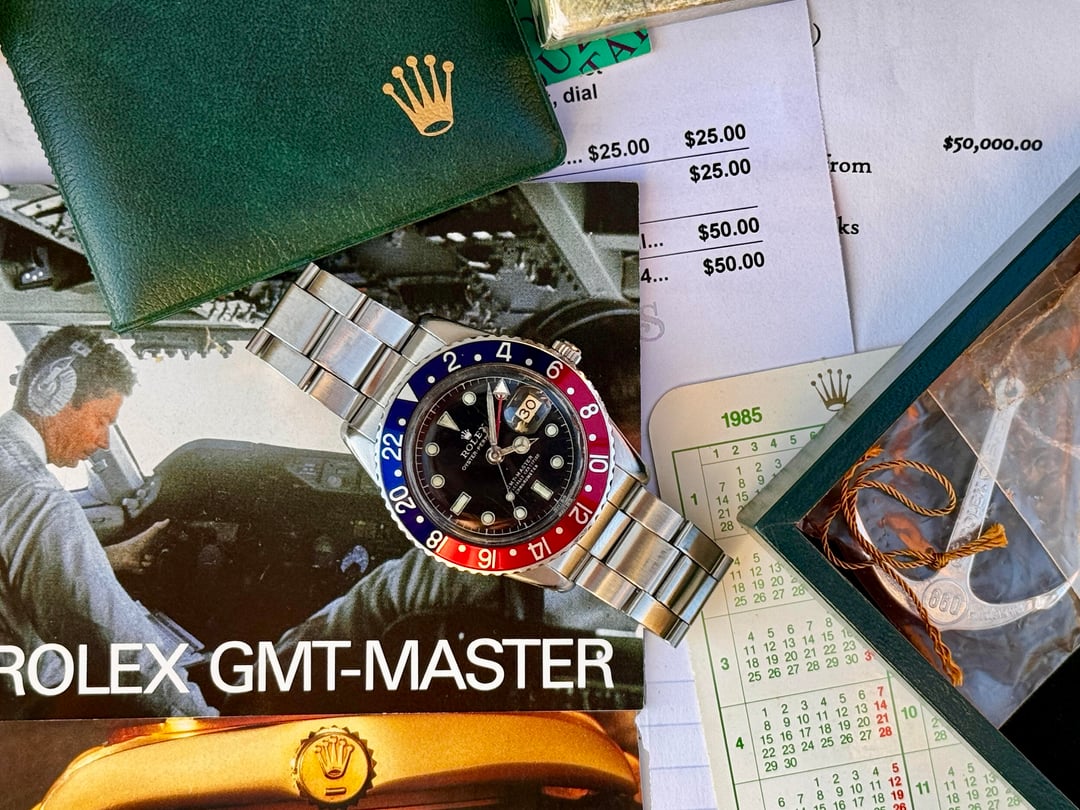 **Imgur pics:**[ https://imgur.com/a/0R9ceoq](https://imgur.com/a/0R9ceoq) **Timestamp:**[ https://imgur.com/29XwjfV](https://imgur.com/29XwjfV) I’m listing my 1958 Rolex GMT-Master ref. 6542 - the first-generation GMT platform. This is the original pre-1675 GMT with no crown guards, the reference that launched the GMT line and predates the entire 1675/16750 era. The clean, crown-guard-less case is one of the defining early-GMT traits, and Rolex abandoned this design shortly after. This example retains its original 1958 6542 case and houses the correct Rolex Cal. 1030 GMT movement, the earliest GMT movement architecture before Rolex transitioned to the 1036. It carries mid-1980s Rolex service components (bezel, insert, hands) from a Rolex service event in Charlotte, South Carolina, and the dial retains its original metal base with a later refinish. Very few honest 6542s of any configuration surface publicly, especially running examples. **Inspection and Verification:** Inspected in person by Giovanni Passalacqua, a Bay Area vintage Rolex specialist, who confirmed a genuine 1958 6542 case, correct 1030 GMT movement, original dial base metal, and authentic Rolex service components. The watch is running. Formally appraised by Mark A. Watson (GIA/NAWCC, San Francisco) for insurance at approximately $50,000. The Rolex Boutique (Kern Jewelers, San Francisco) also looked it over. Several other known watchmakers have inspected the watch as well. **The Watch Details:** * Original 1958 case stamped 6542 * Serial range 427\*\*\* * Correct Rolex Cal. 1030 GMT movement * Case-back stamped IV 1958 (denoting the last quarter of 1958) * Genuine Rolex service bezel and insert from the mid-1980s * Genuine Rolex service hands from the same period * Original metal dial base with a later refinish (common on Rolex-serviced 6542s) * Crown winds but does not currently set time or date and will require keyless work * Folded-link Rolex 7836 bracelet, believed complete * Includes the Rolex GMT service paperwork from the mid-1980s Charlotte, SC service visit (not 1958 delivery papers) **Pricing:** **$22,500** for a same-day local cash sale before travel. **$29,500** trade valuation into Rolex, Omega, Tudor, or Cartier (cash can be added either way). Bank wire or Zelle preferred. Bay Area face-to-face preferred. US shipping available after verification. Appraisal and authentication documents can be provided to serious buyers. FaceTime available to show movement, serial range, and case profile.