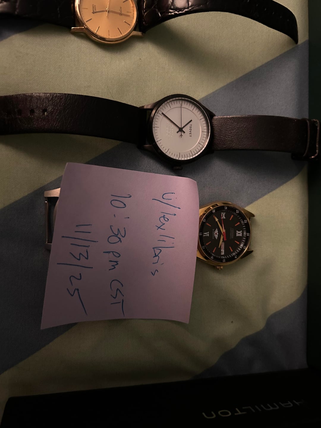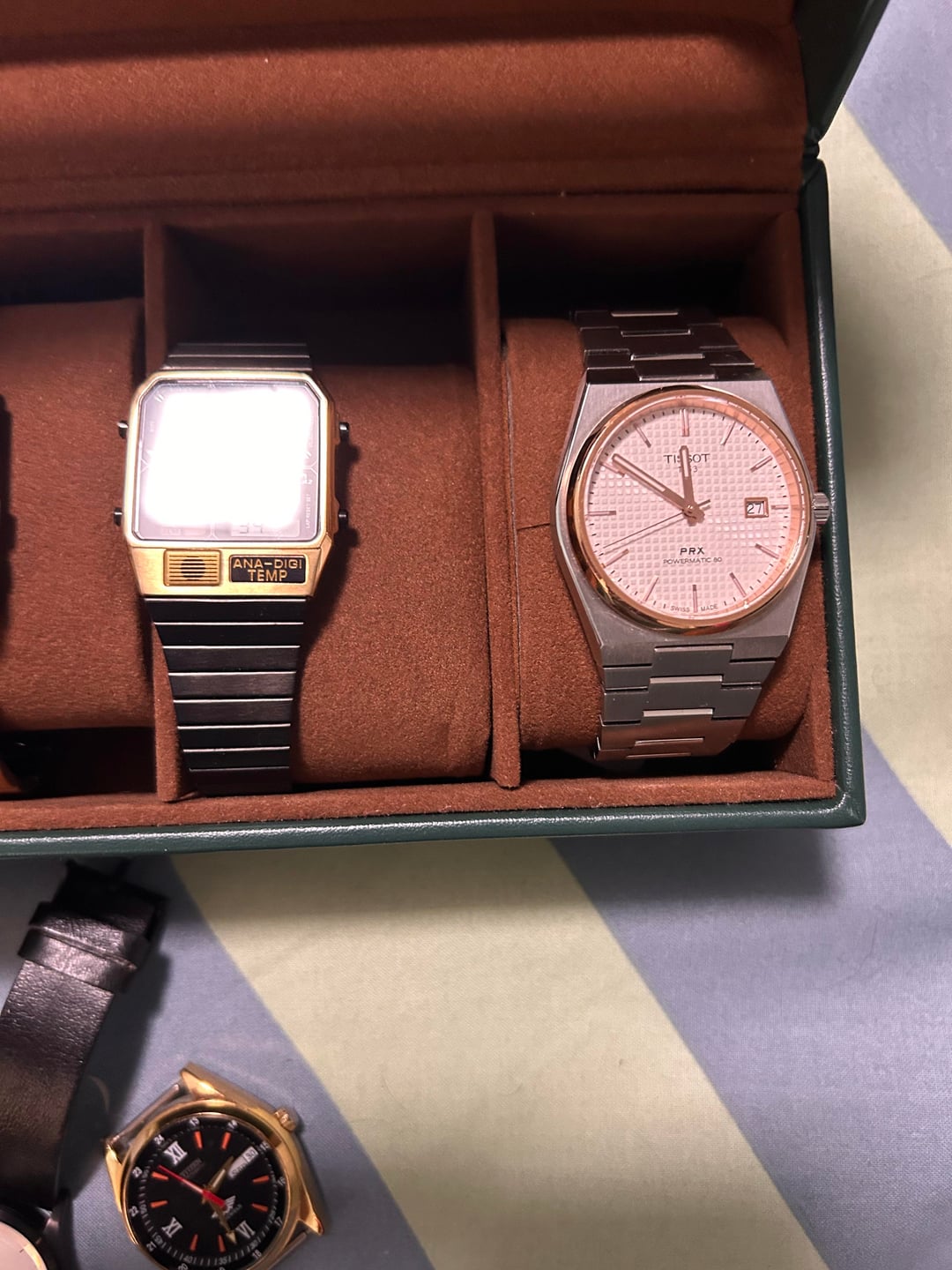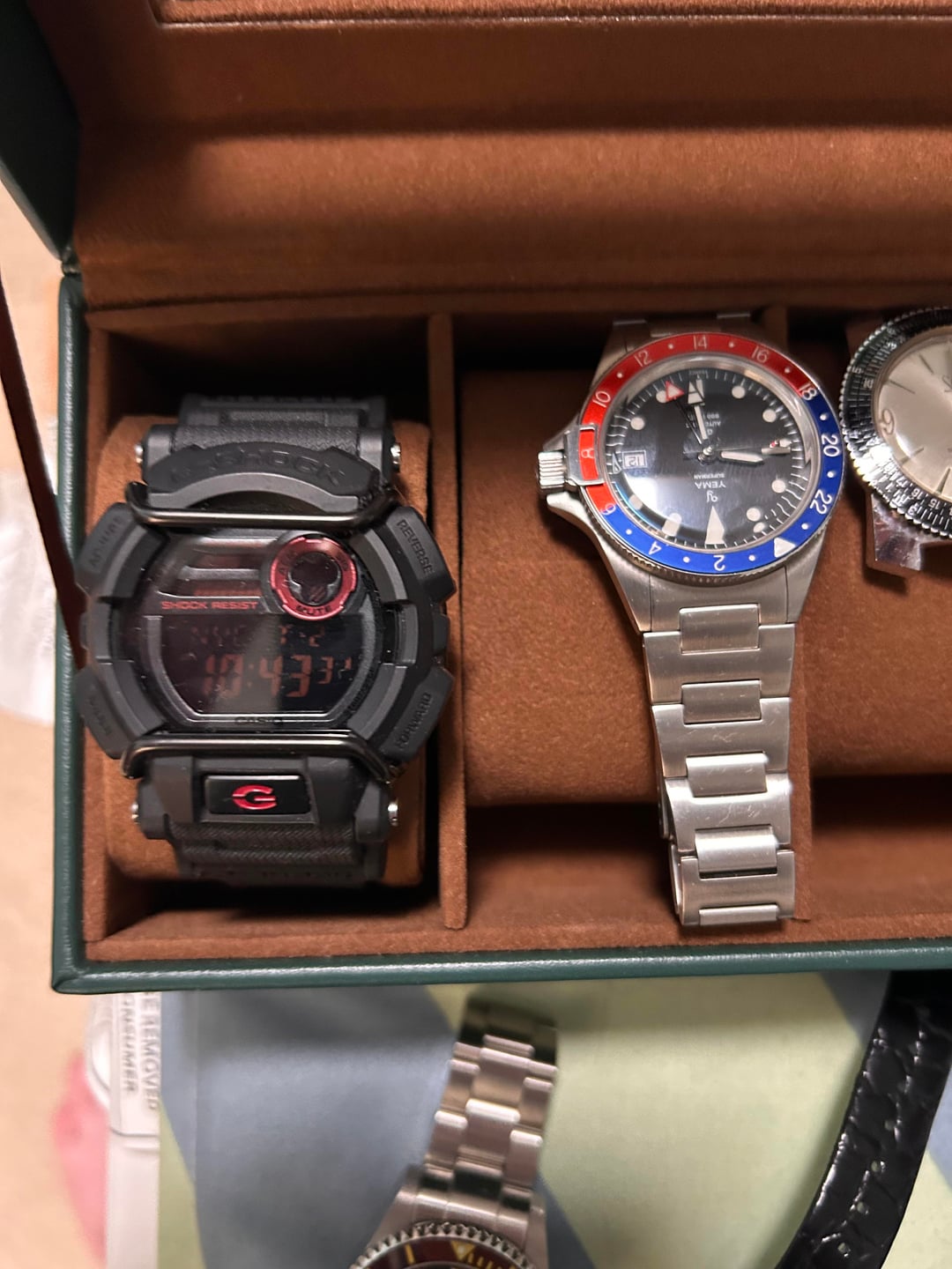 hello folks, looking to trade some of my overflowing watches away that I do not wear. not really sure what I want at the moment, I can post some rough ideas below though! brief rundown: a gshock(gd-400?). bought new on ebay, barely worn as it was a bit too big for my taste so I tend to reach for the classic box shaped one Yema superman gmt — bought on eBay, 2/100. seller said there was a problem with the GMT hand but turned out he just didn’t understand the gmt hand tracks the outer bezel vintage sheffield watch with slide rule bezel — from the 60s, another vintage find casio CA506 LE— i bought this new from amazon like a decade ago. lightly worn, mostly just your typical ‘desk scraped’ on the underside of the bracelet. i have the tin for this Figure/citizen ana-digi temp—import purchase, my understanding is that it is for the JDM tissot prx — y’all know about these i’m sure squale 1545 — when squale used to make sub knockoffs. hamilton khaki field 42 — I have the bracelet for this as well but i wore it on a strap primarily tsovet quartz jpt c036 — my first watch i bought probably 15 years ago; i replaced the battery last year hamilton pan europ 42mm gray — they discontinued these, I bought sometime a couple years ago from Japan when the exchange rate was favorable a random 70s citizen — cheap ebay find when i was looking for a fun 70s japanese watch early on all of these are operational, and have kept good time, but have not seen a lot of wear (most only a handful of times, the squale got a bit more). none have been serviced since i owned them but frankly i kinda went overboard buying watches so I got most of these in the last year and I just want to try to see what i can do here before dealing with ebay. I do have an ebay account with 100% positive feedback if that eases your concern and can message you there if you have questions about some 0 transaction guy I will post what i’m looking for (broadly) below EDIT: forgot about the seiko dolce. had the battery replaced a year ago, great little quartz watch. some of the indicted appear to have fallen off at some point which i did not notice for a long time, as it’s honestly hard to tell until you point it out. very neat watch, insanely thin
