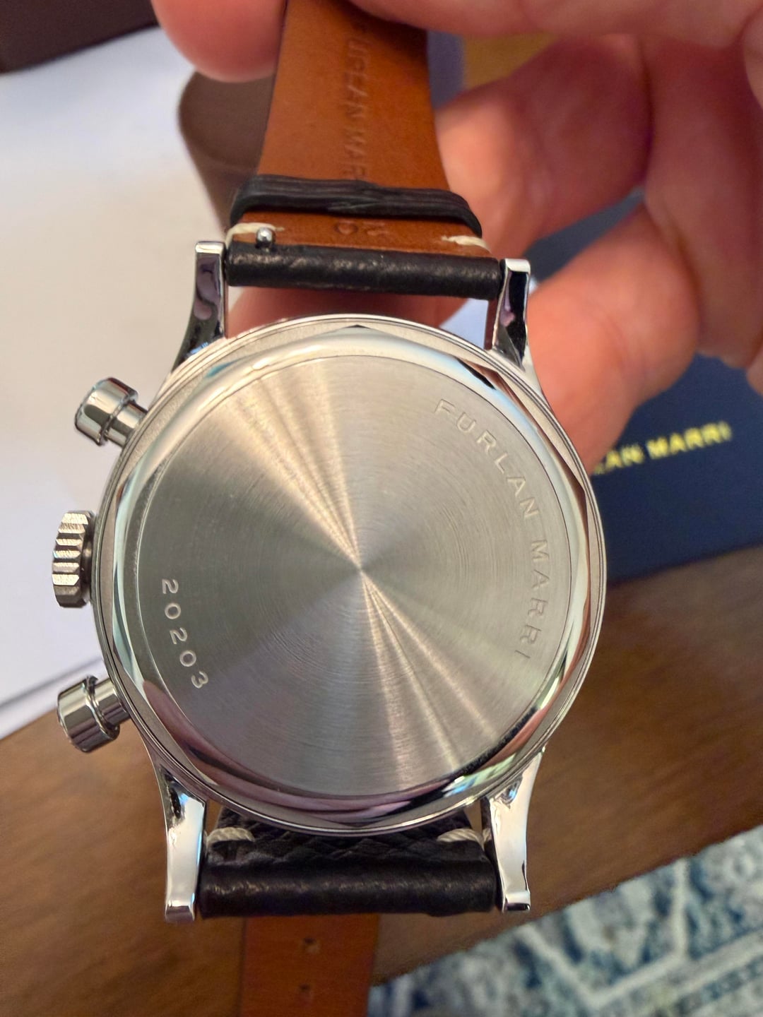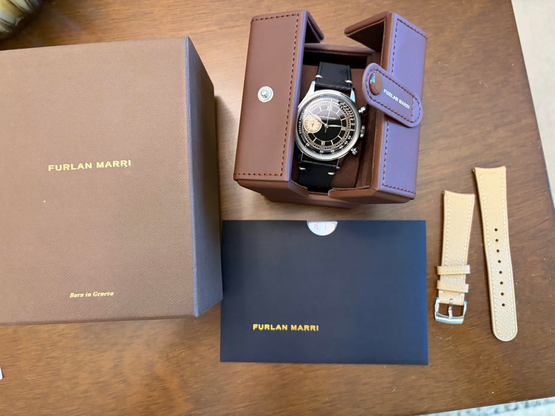 Selling my Furlan Marri Nero Sabbia. This is from my personal collection and has been worn lightly. It’s in excellent condition with no signs of wear. Crystal is clean, bezel and case look great. What’s included: • Full kit • Original strap • All paperwork/cards Price: Asking $950 shipped (CONUS). Shipping will be fully insured and packed securely. Payment: Zelle or bank wire preferred. Venmo/PayPal Friends & Family only for established users with solid feedback. (No PayPal Goods & Services.)