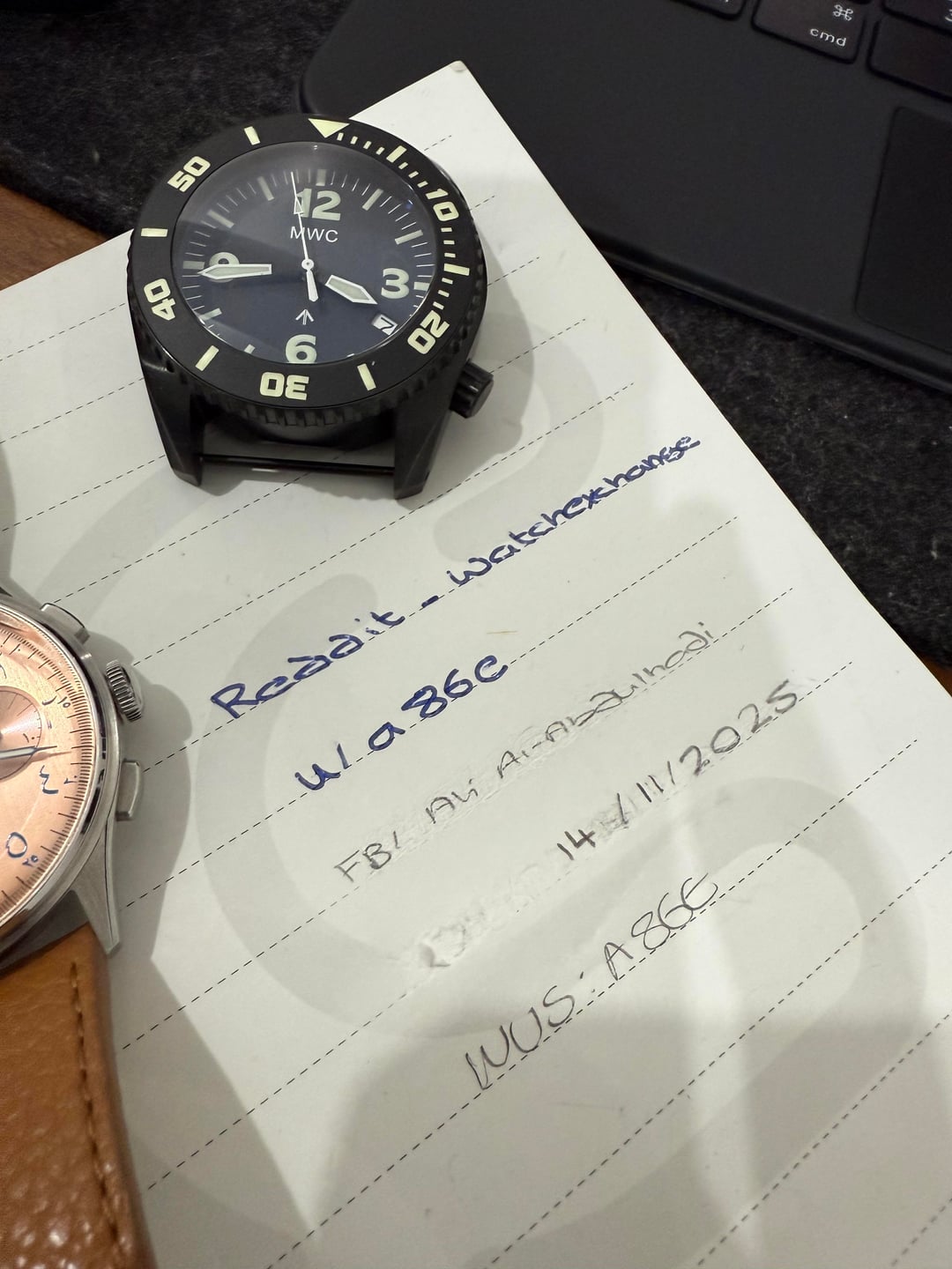 Hey all, I have this tank of a watch, the MWC Depthmaster. NATO is clean, comes with box too. Has a mark on the bezel.but nothing Major. Overall it's a clean example as shown by the pictures. Retails at $660 Specs: Movement: 24 Jewel Automatic NH35A with hacking function and a 41-hour power reserve Water Resistance: 100ATM / 3,280ft / 1000M Crown: Screw-down locking Helium Escape Valve: Yes Dimensions: Width: Including Crown 47mm (Excluding Crown 44mm) Thickness: 18mm Crystal Diameter: 31mm Lug to Lug: 48mm Weight: 140g Bezel: Unidirectional non-reflective with ceramic insert Crystal Type: Sapphire with Anti-Reflective Coating* Case: 316L PVD Stainless Steel Illumination: Luminova on markers, hands, and bezel Strap: 24mm NATO Webbing Strap Price: $475 shipped TYD, loosely negotiable Not interested in trades Please read the disclaimer before shooting a PM Thanks ⸻ Watch Sale Disclaimer: • I am a private collector, not a store or reseller, and I am not affiliated with any watch brand mentioned in this listing. • The watch will be shipped from Kuwait via FedEx, and a tracking number will be provided to the buyer once dispatched. • Buyer is responsible for any customs duties, VAT, or import taxes that may be charged upon delivery, depending on your country’s regulations. • I welcome all reasonable requests for additional information, including more photos and/or videos to verify the watch and its condition. • Payment terms: • Established Watchexchange members with verifiable feedback may pay via PayPal Goods & Services only, I do not accept Friends & Family nor Zelle • New or low-feedback users must pay via wire transfer. All watches are sold as-is, with details described to the best of my knowledge. Serious inquiries only, please. Thanks for looking