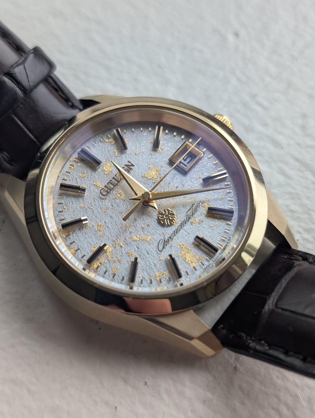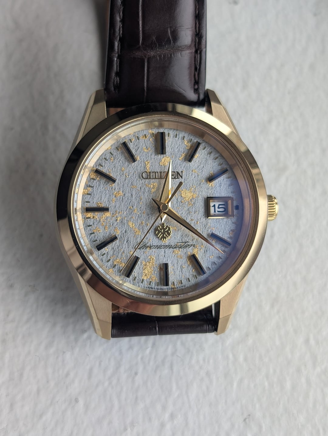 [timestamp](https://photos.google.com/share/AF1QipOk30WidU-roUguAIT0V-12yitIUFq_5Tf9TNQFjVuLb6VDSI8KajCAzB3qWCJlcg?key=ei01dk9kdTFEa0dtd0ROVks2dVh3eng4MmlWckZB) For sale is a Citizen The Citizen AQ4042-01P Limited edition. This is a beautifully finished titanium watch that's been anodized to look golden. It features a superb anti-scratch coating and has some of the best case finishing I've seen on a watch, period. Selling because I'm looking for something sportier. Likely gonna grab one of the Citizen NC0210s when the opportunity comes up. Condition: Fantastic! Virtually no scratches except on the underside of the lugs. Comes with box and papers. However the box was a bit damaged when I bought it. Price: 2500 shipped