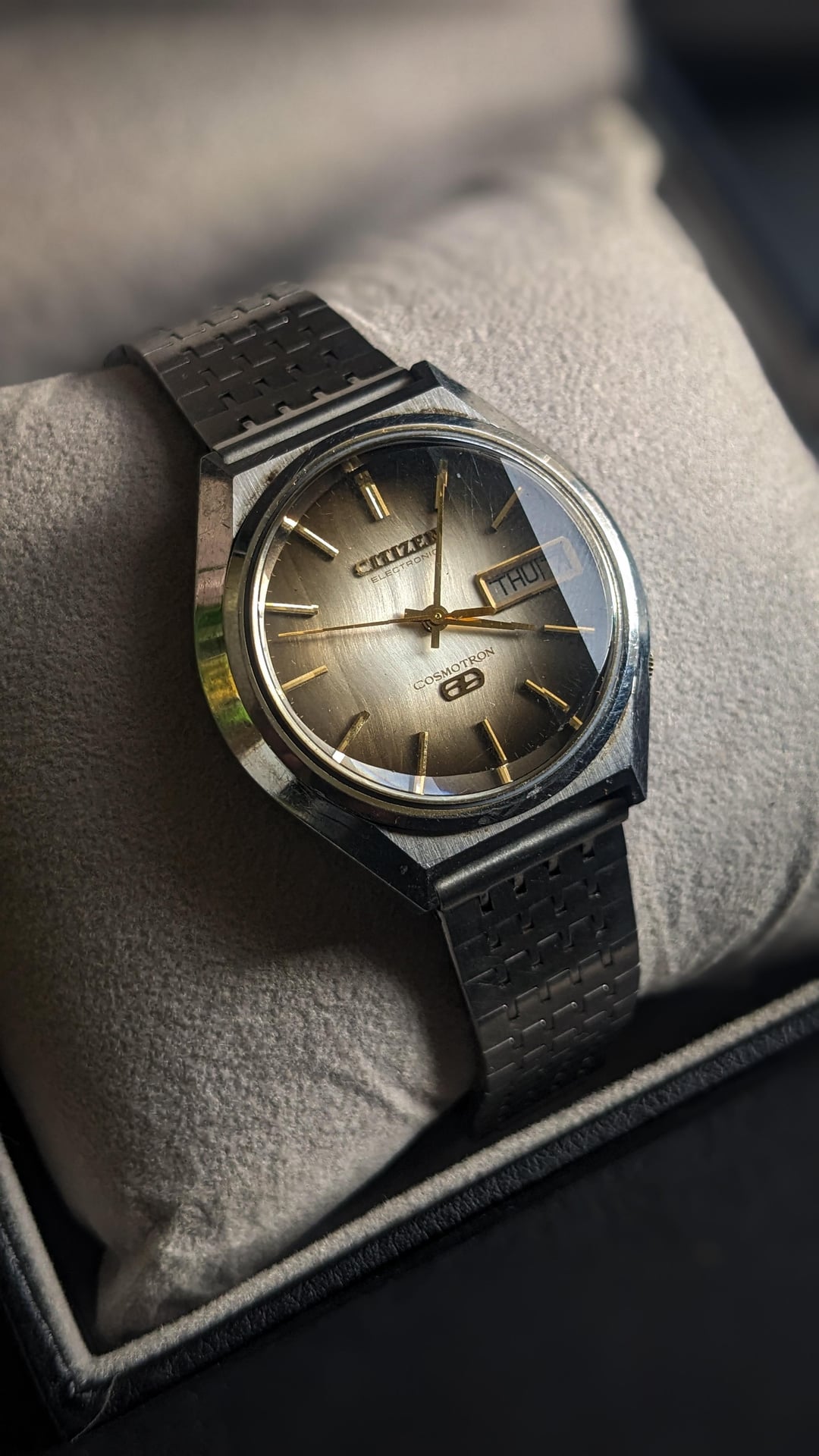 ![Thumbnail [wts] 1970's vintage Citizen Electronic Cosmotron QZ 4-790791 Brown woody textured dial 38mm Men's watch, price $285 6](https://cdn-cf.watchpatrol.net/120x120/img/full/2d3f4b5e1275ee275733885b961d30670f1c08f7.jpg)