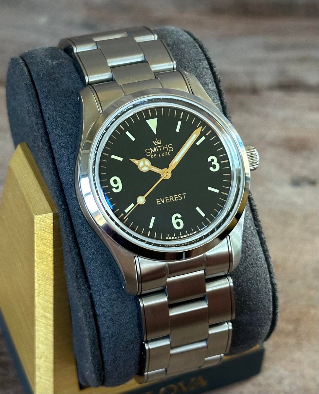 Up for grabs is a Smiths PRS-25 36mm Everest with the gilt dial on oyster bracelet, offered in excellent condition. It runs great, has seen minimal wrist time, and is ready for its next owner. These punch well above their price point, but I tend to prefer larger watches, so it’s time to let this one go. This is a chance to pick one up without dealing with release-day timing, tariff/import fees, or long shipping delays! Price: $525 shipped. Not considering offers or trades at this time. Feel free to reach out with any questions, and thanks for looking!