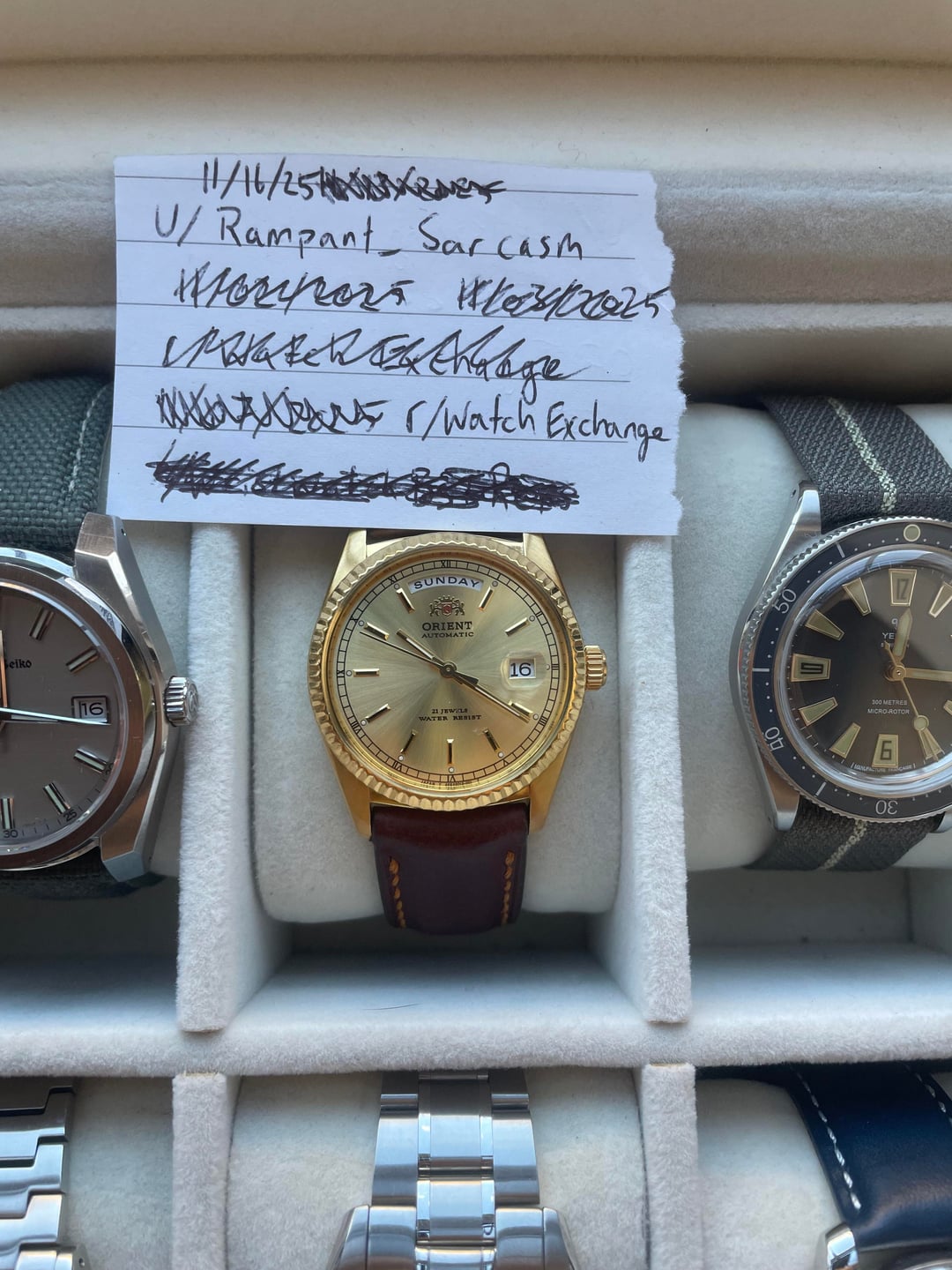 Putting up for sale this lovely classic Orient day-date. Unfortunately gold doesn’t suit me, so I’m letting this go for the same amount it cost me to get into the US. Price is firm at $475, insured shipping included. Edit: changed price, earlier price was incorrect