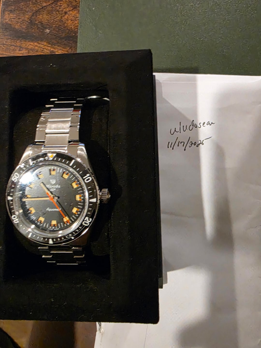 For sale is my Nivada Grenchen Aquamar “Antarctic Diver” in the Black dial version with the flat-link bracelet. Condition: Brand New In Box (BNIB) — never worn. Kit: Comes complete with original box, papers, and the flat-link bracelet variant as shown on the official site. Location: U.S. Price: $899 shipped Payment: Zelle or PayPal F&F preferred. Shipping: Securely shipped (insured) Reach out with any questions!