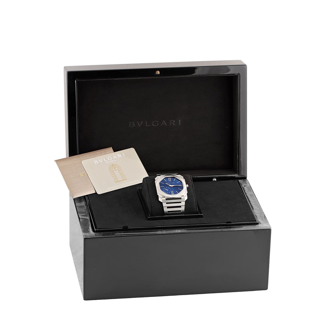 Up for grabs is the insanely gorgeous Bulgari Octo Finissimo in stainless steel with brilliant blue dial. Model #103431 Please do your research based on the model number for any specifics about the watch. The watch is currently sized for a 6.5" wrist but will come with all links as well as the box and accompanying materials. The watch is in overall great condition. Please ask any questions. I am happy to send more pics and videos through Insta for serious buyers. Just add me on Insta at wilde1photos and mention the model you're interested in. Watch is $8,800 shipped priority mail anywhere in the CONUS. No international shipping. Will consider trades for similar level watches from members with transaction history. Currently interested in these models : Zenith Triple Calendar - Panda Dial Glashutte Original - Panomaticlunar Blue face on bracelet Cartier drive extra flat (rose gold) Omega Speedmaster Tokyo Rising Sun Omega Speedmaster Tokyo with blue face Speedmaster in solid moonshine gold with green face Thank you for checking out my post 🙏🏻