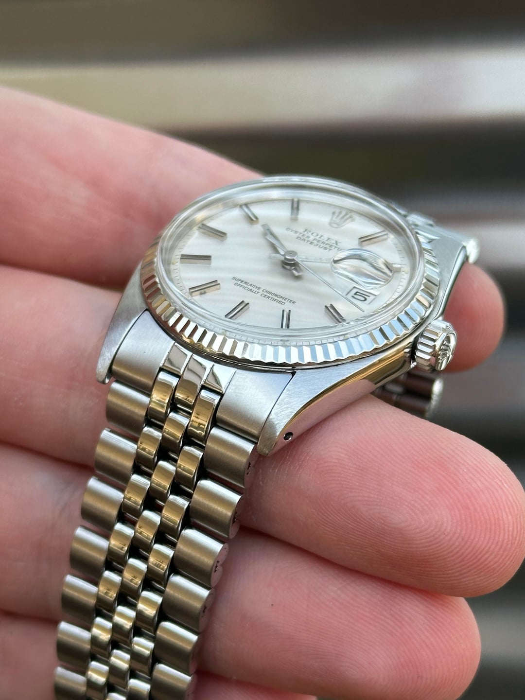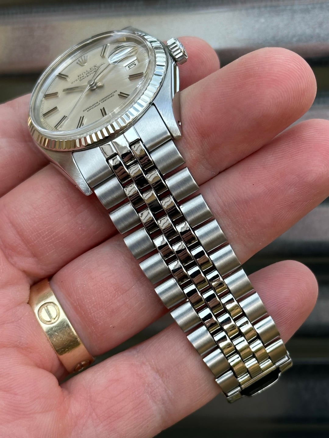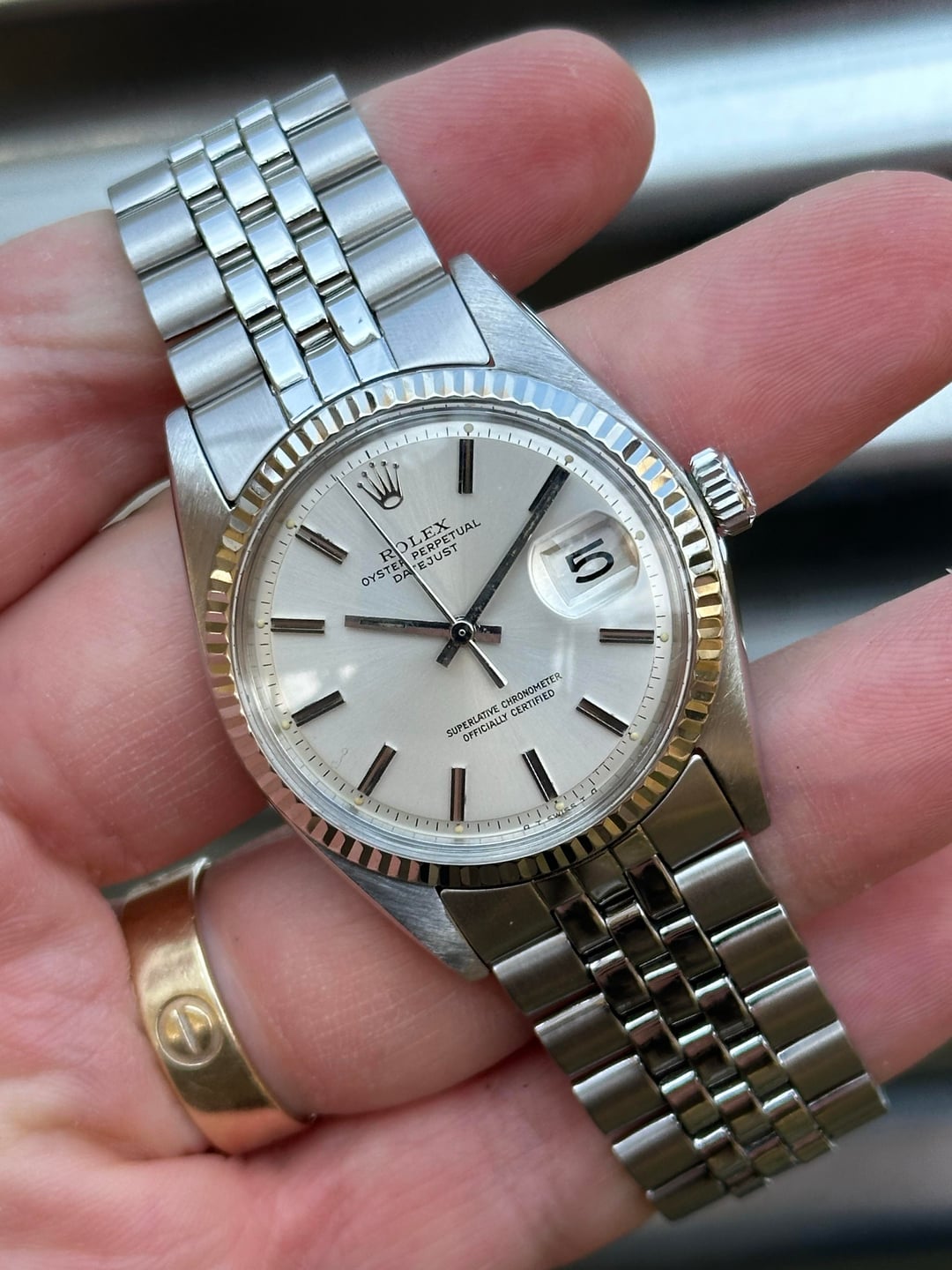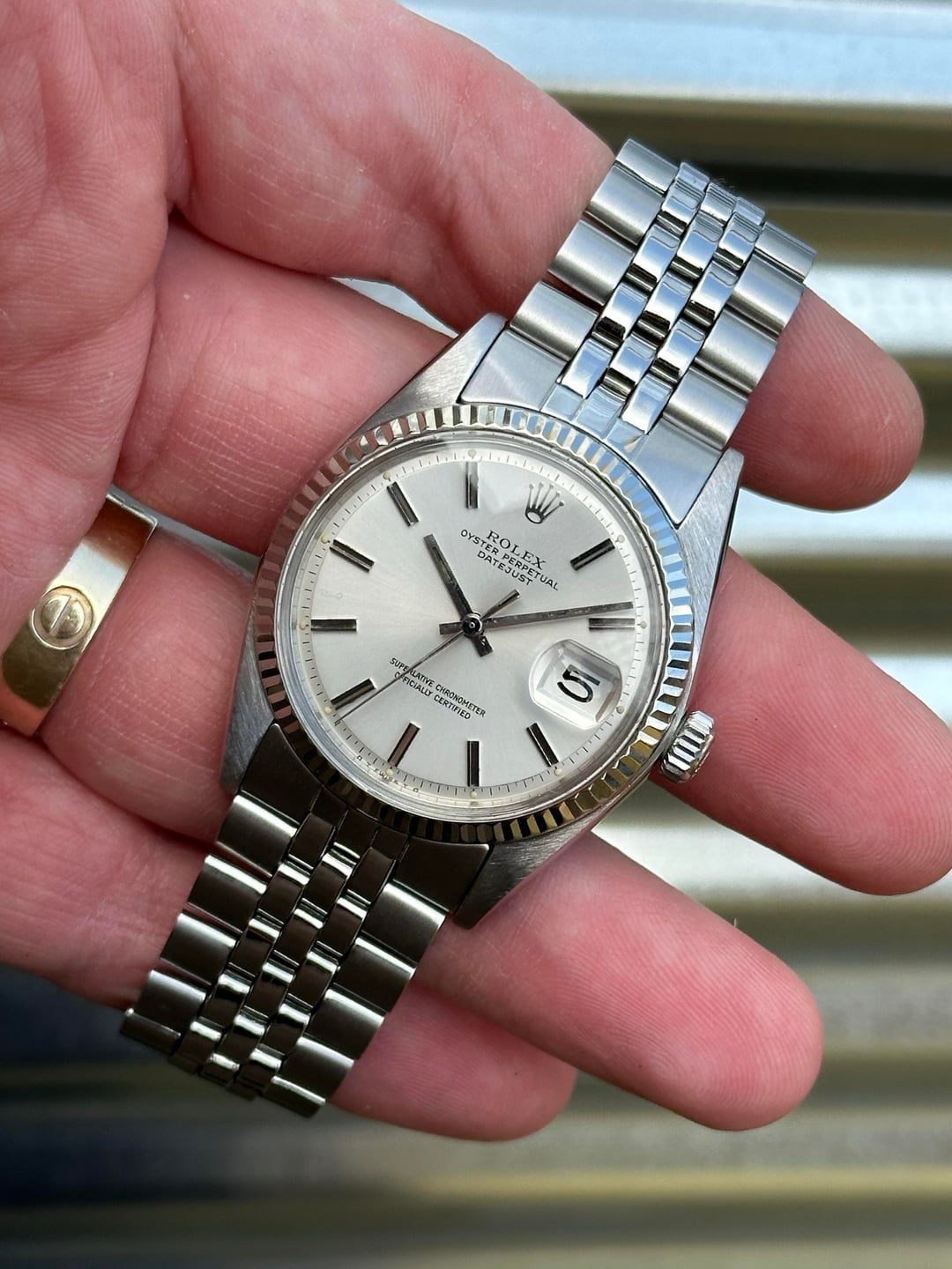 Check out this vintage, 1973 Rolex Datejust 36mm reference 1601. This thing is 50+ years old and it’s still kicking and looking good. It features a jubilee bracelet, gold fluted bezel and a silver stick pie-pan dial. Reference number: 1601Case:36mmSerial number: 3.2****** which dates this watch to 1973. COMES WITH WATCH ONLY. NO BOX OR PAPERS 💰3️⃣9️⃣5️⃣0️⃣+📦✈️ The watch is in overall very good pre-owned condition for its age - see pics for details. Keep in mind it’s 50+ years old. Clean dial. The acrylic crystal is free or any scratches or chips. The 36mm case remains in good shape. Nice sharp lugs that are still thick. Clean finish on the folded link jubilee bracelet. The coronet on the clasp is still defined. Clean clasp. The fluted bezel is in good shape. Some light stretch on the band as to be expected for its age but overall still an awesome watch. It would make for a good birth year watch for someone, or just a great vintage piece for any collection. 💰3️⃣9️⃣5️⃣0️⃣+📦✈️ We accept Zelle/Wire as payment. Overnight fully insured shipping. We have plenty of references across different platforms so buy with confidence. All of our photos are taken in natural sunlight and are in no way edited with computer programs. Follow us on IG @215Watches for daily deals. [photo album](https://imgur.com/a/lywdJz2) [time stamp](https://imgur.com/a/GmlfmvS)