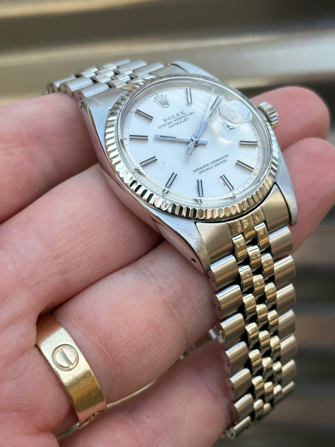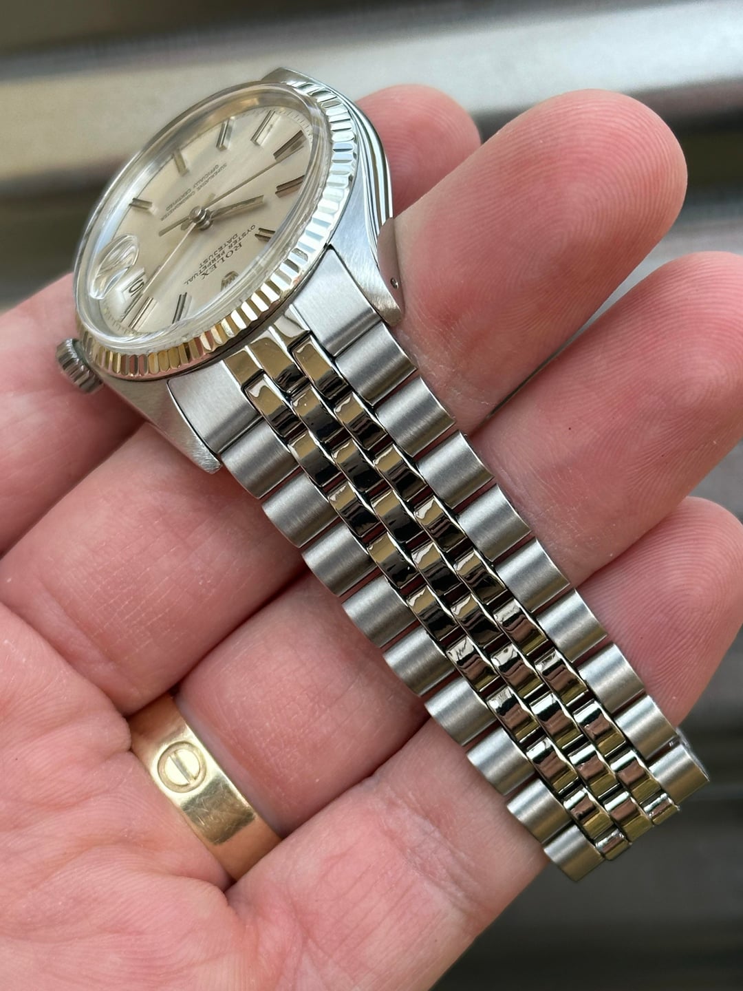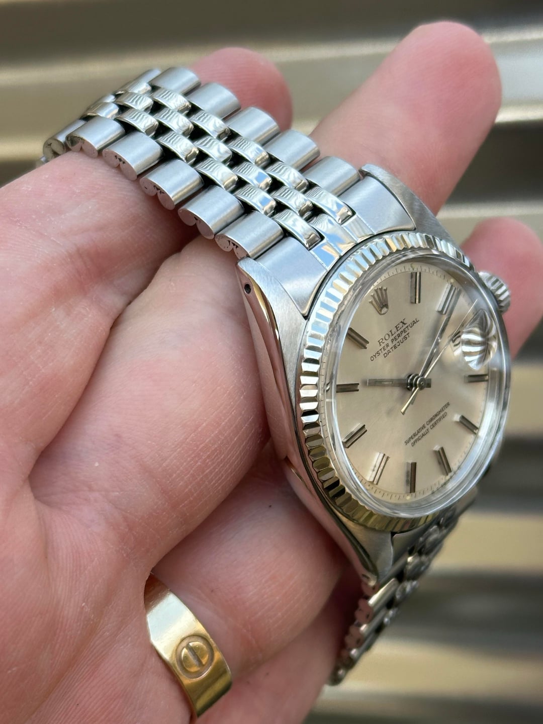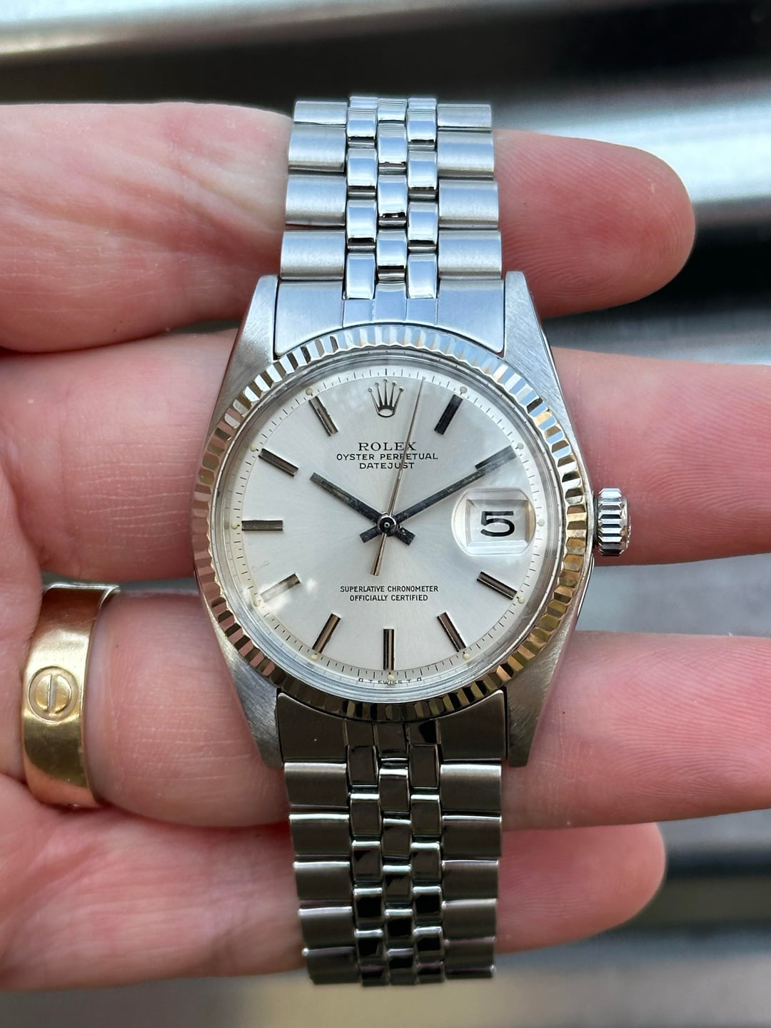 Check out this vintage, 1973 Rolex Datejust 36mm reference 1601. This thing is 50+ years old and it’s still kicking and looking good. It features a jubilee bracelet, gold fluted bezel and a silver stick pie-pan dial. Reference number: 1601Case:36mmSerial number: 3.2****** which dates this watch to 1973. COMES WITH WATCH ONLY. NO BOX OR PAPERS 💰3️⃣9️⃣5️⃣0️⃣+📦✈️ The watch is in overall very good pre-owned condition for its age - see pics for details. Keep in mind it’s 50+ years old. Clean dial. The acrylic crystal is free or any scratches or chips. The 36mm case remains in good shape. Nice sharp lugs that are still thick. Clean finish on the folded link jubilee bracelet. The coronet on the clasp is still defined. Clean clasp. The fluted bezel is in good shape. Some light stretch on the band as to be expected for its age but overall still an awesome watch. It would make for a good birth year watch for someone, or just a great vintage piece for any collection. 💰3️⃣9️⃣5️⃣0️⃣+📦✈️ We accept Zelle/Wire as payment. Overnight fully insured shipping. We have plenty of references across different platforms so buy with confidence. All of our photos are taken in natural sunlight and are in no way edited with computer programs. Follow us on IG @215Watches for daily deals. [photo album](https://imgur.com/a/lywdJz2) [time stamp](https://imgur.com/a/GmlfmvS)