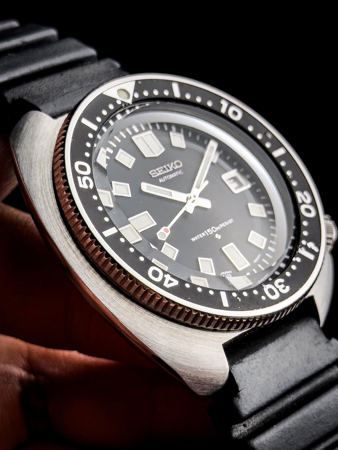 | SEIKO Second Diver late type 1974 Vintage 150m 6105-8110 Men's AT Watch RARE variety-village2024 (274) |