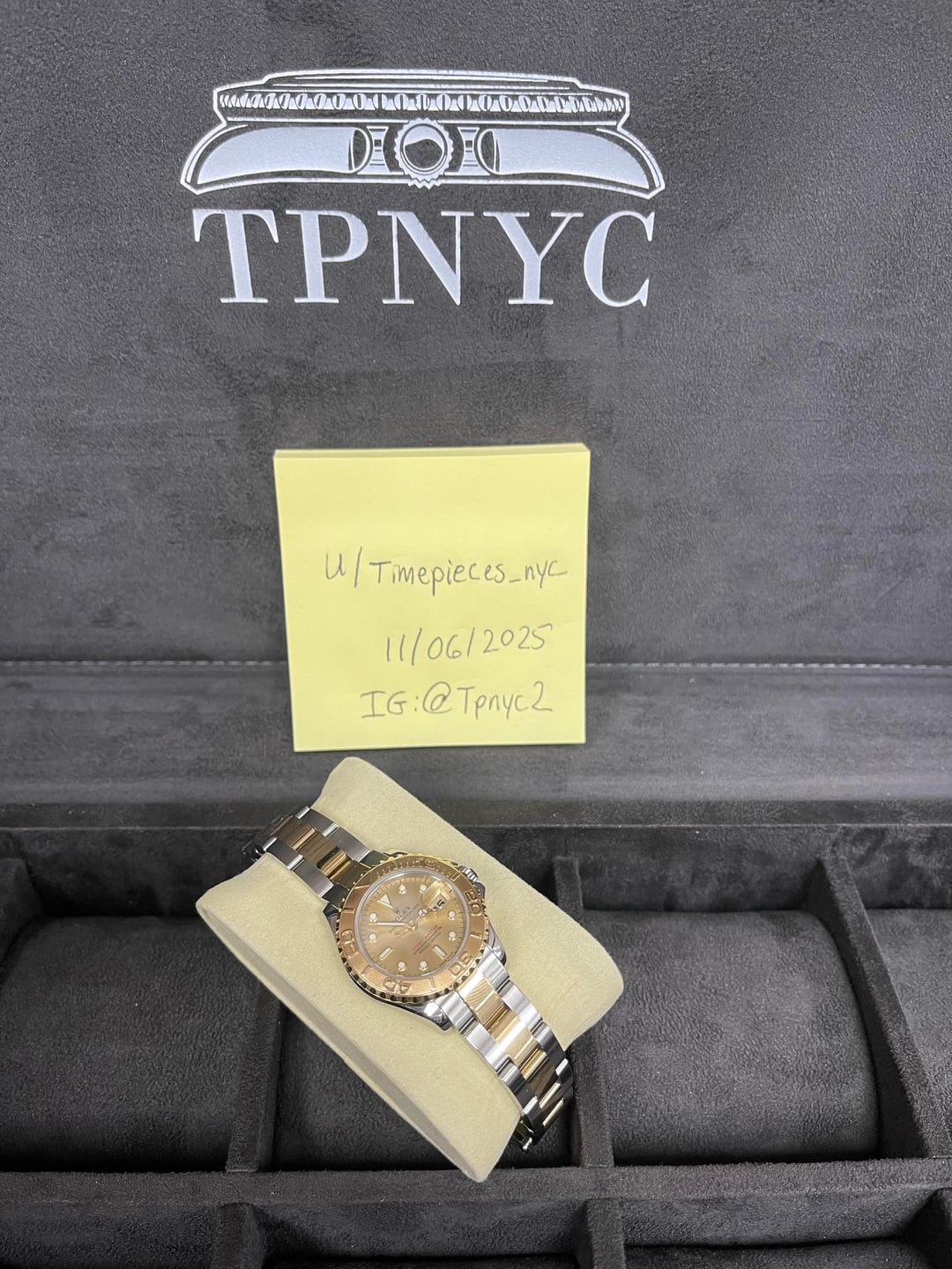 Price: $5,999 Shipped Watch: Rolex Reference Number: 169623 Comes With: Box and Papers (2000) Condition / Specifics: This 29mm ladies Yachtmaster is in preowned clean condition with hairline scratches throughout. The crystal has a dot mark and line scratch on it. There are 11 links fitting up to a 6.5 inch wrist. As always please reach out with any questions prior to purchasing! Additional Notes: • Pictures Accurately Display Condition, So Please View All Photos • Watch Currently Runs (Service History Unknown) • FREE 2 Day Insured FedEx Shipping • NO RETURNS, All Sales Are Final! We Accept: Bank Wire Transfer, Zelle, Crypto TRADES ARE ALWAYS WELCOME !!! Additional ways to contact us: Corresponding on Reddit can be a pain sometimes. If you have further questions and need another way to connect, you can visit our website tpnyc2.com or Instagram @tpnyc2! Reddit Followers Get Free Overnight Shipping and $50 Off This Purchase! (Only Applies If You Don’t Negotiate And Buy For Full Price)