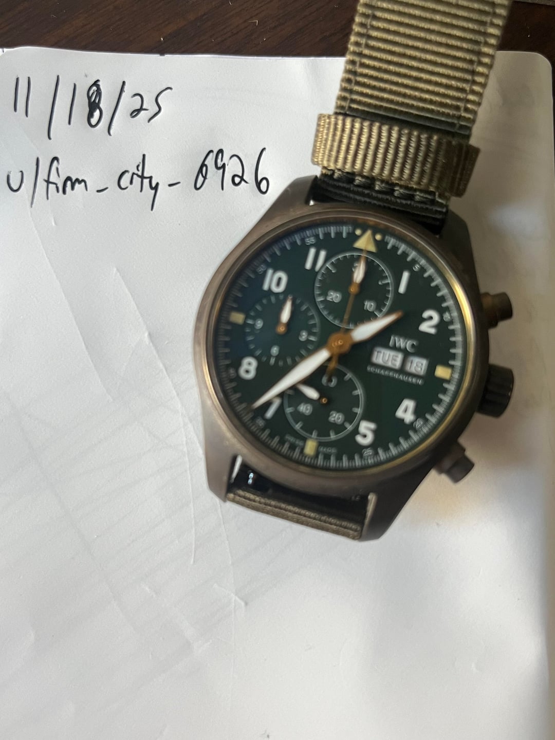 [WTS/WTT] IWC Spitfire Chronograph Bronze/Green, full kit dated 5/2020 with extra strap - $4500 CONUS