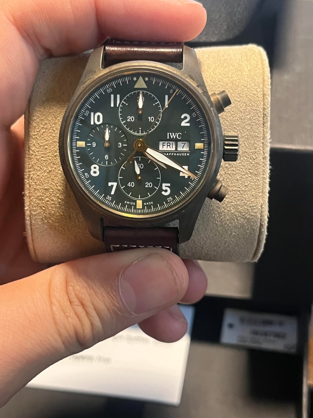 italiano![[WTS/WTT] IWC Spitfire Chronograph Bronze/Green, full kit dated 5/2020 with extra strap - $4500 CONUS 1](https://cdn-cf.watchpatrol.net/600x600/img/full/00e66d6a762a345f2a191ced1a125b5cba90f37e.jpg)