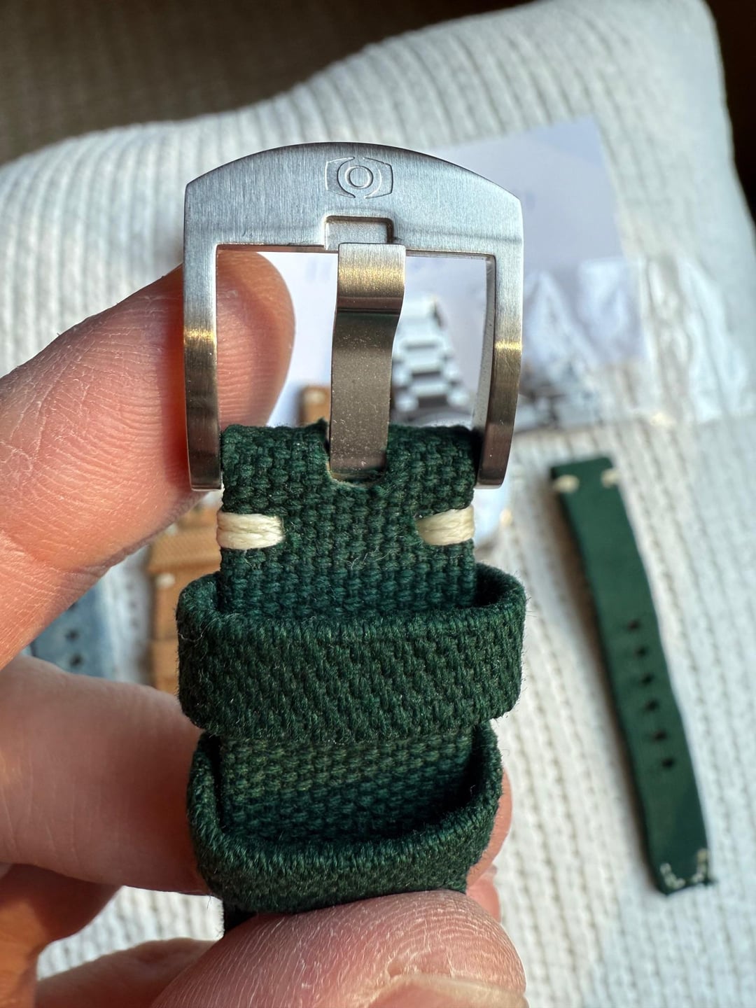 Hi everyone, clearing out more of my watch box. I like the olmstead but just don't wear it enough. I got it off here and it didn't come with box or papers. I did purchase the bracelet separately a few months ago and am throwing in three oak and oscar canvas straps. I have never worn the green or khaki one, the blue has light wear. Crystal is clean and a few hairline scratches on case and bracelet. Running well and hope it can find a new home. Asking $700. Prefer CONUS, can zelle, venmo or pay pal. Thanks for looking and let me know if any questions.