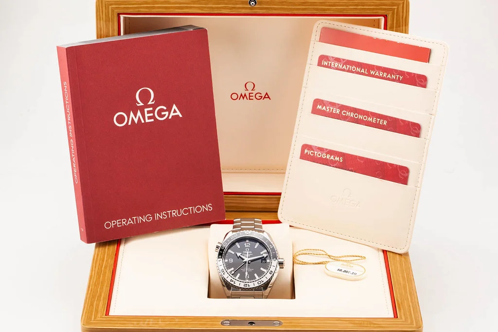 Up for sale is an excellent condition Omega Planet Ocean GMT 8906 43.5mm Oreo Bezel, reference # 215.30.44.22.01.001 It comes complete with all boxes, papers, booklets, hang tag and Omega Warranty Card dated February 2022.