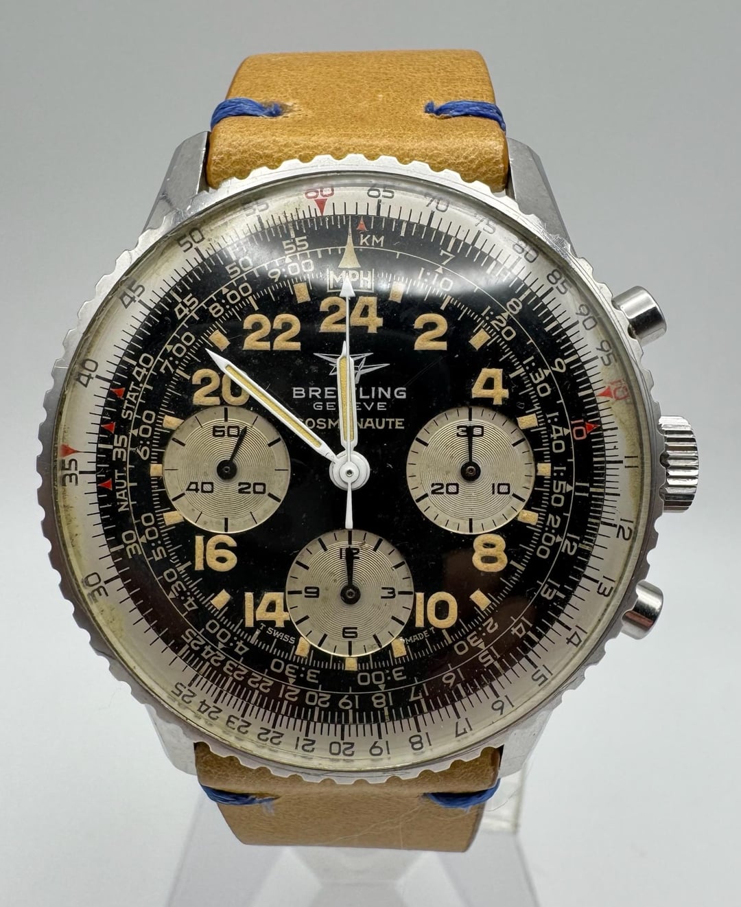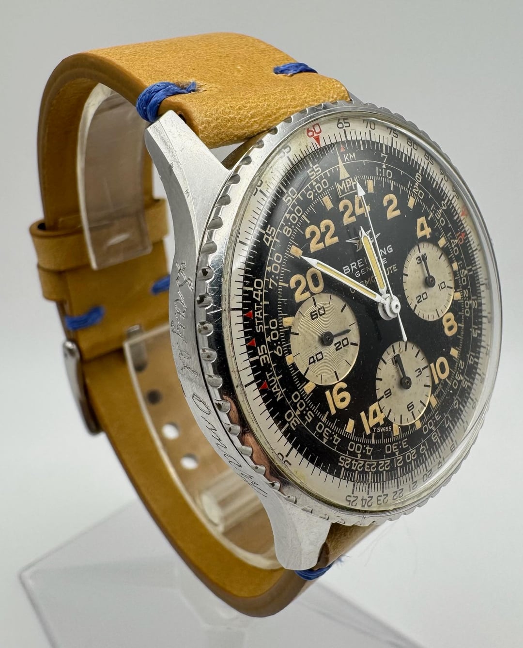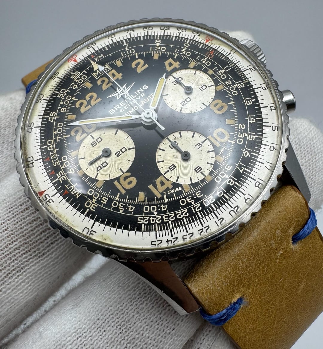 Breitling Navitimer Cosmonaute 809 all original in very nice overall condition. The case remains in its original unpolished state, showing moderate wear consistent with age and use. This particular example carries notable provenance, having belonged to a fighter pilot from the Jordanian Air Force. His name is engraved on the side of the case, accompanied by additional markings on the case back—adding historical depth and individuality to the piece. The original dial has developed an attractive warm patina across the lume plots, perfectly matched by the aged tritium hands. The lume still reacts under UV light, confirming its authenticity. The movement was professionally serviced in October 2025 and runs accurately, with all chronograph functions performing as they should. Fitted on a new handmade 22/20mm light brown ammo strap. A remarkable and historically significant Navitimer that embodies both aviation heritage and authentic character. **Reference:** 809 **Size:** 41mm **Year:** ~1965 📜 Includes: Custom [travel pouch](https://bogossia.com/products/travel-carrying-case) ($50+ value) 💵 Price: $7,250 + FREE overnight shipping with FedEx fully insured. [Timestamp](https://imgur.com/a/wPBKe8v) 🔥 Follow us on [Instagram](https://www.instagram.com/bogossiajewelers) 📍 Location: New York 🔒 Authenticity: 100% guaranteed, buy with confidence. We have 150+ reviews on Chrono24 with 180+ transactions, and Excellent rating score on Trustpilot. Visit our [profile](https://www.reddit.com/u/BoghossianJewelry/s/vm81HAdB7o) for links and references. 📦 Domestic Shipping: Ships with FedEx overnight, within 24 business hours of payment, from New York, NY to CONUS. The shipment is fully insured against damage, loss or theft. 🌍 International Shipping: Incurs an additional $100. 💳 Payment: PayPal/CC (+4%), Web, or Face-to-face deal in NY. 🔐 [Seller References](https://bogossia.com/authenticity) 🔗 [Other Listings](https://www.reddit.com/u/BoghossianJewelry/s/vm81HAdB7o) 📸 [IG: @bogossiajewelers](https://www.instagram.com/bogossiajewelers)