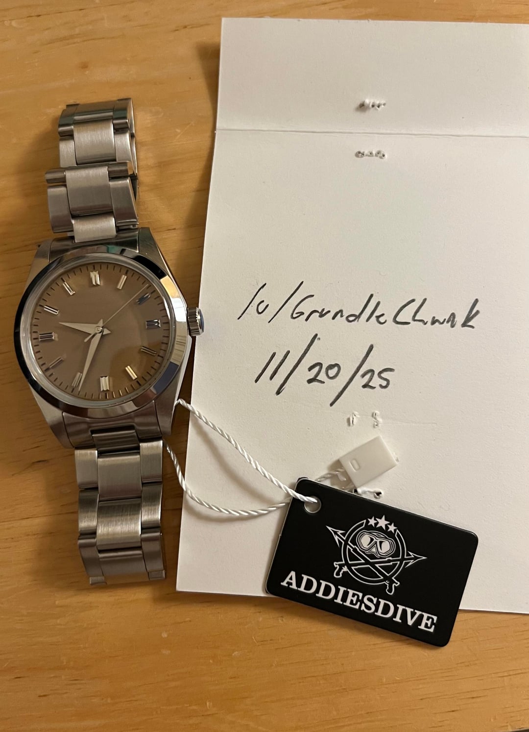 For sale Brand NEW Addiesdive AD2030 sand dial watch. Just bought it and ordered the one with no logo, I preferred the one with the markings. My mistake, you can see my purchase on Nov 12th in the pictures. Case diameter: 36 mm Height: 12 mm including domed crystal Material: Steel Crystal: mineral glass Water resistance: 100m Movement: Japanese Seiko VH31 sweeping seconds quartz movement Strap: stainless steel 3 link bracelet with milled clasp and solid end links $43 shipped to conus. I accept, Venmo, Paypal FF, PayPal G+S is $45
