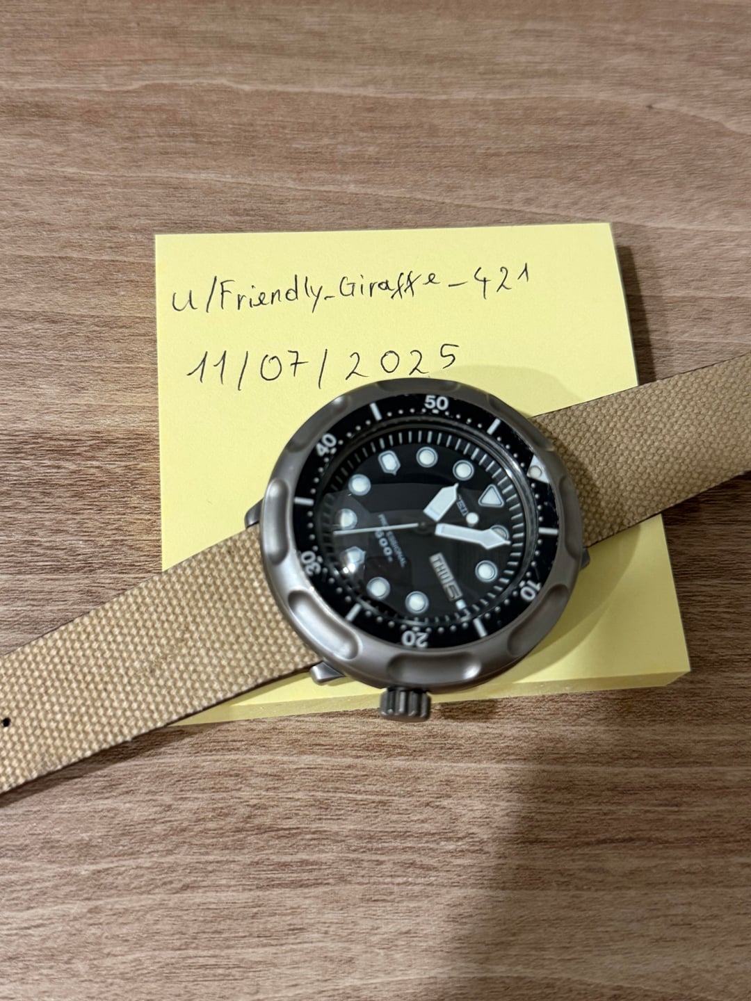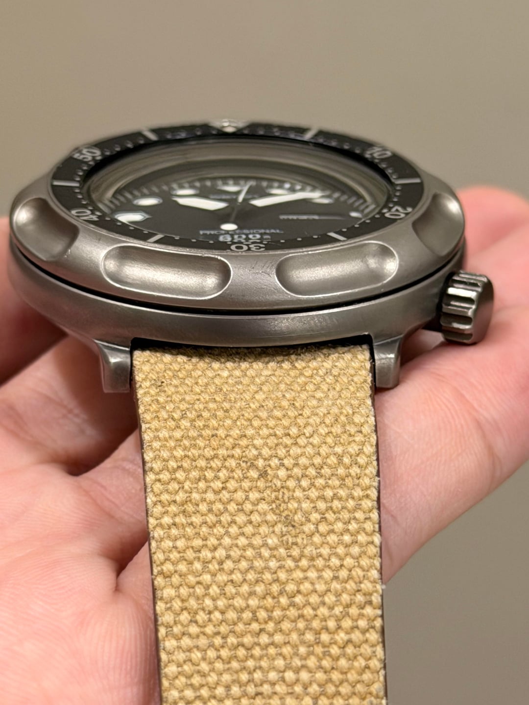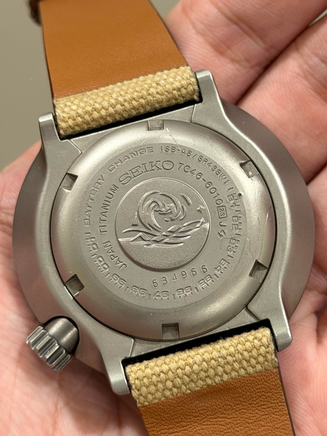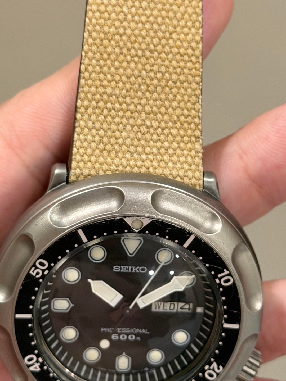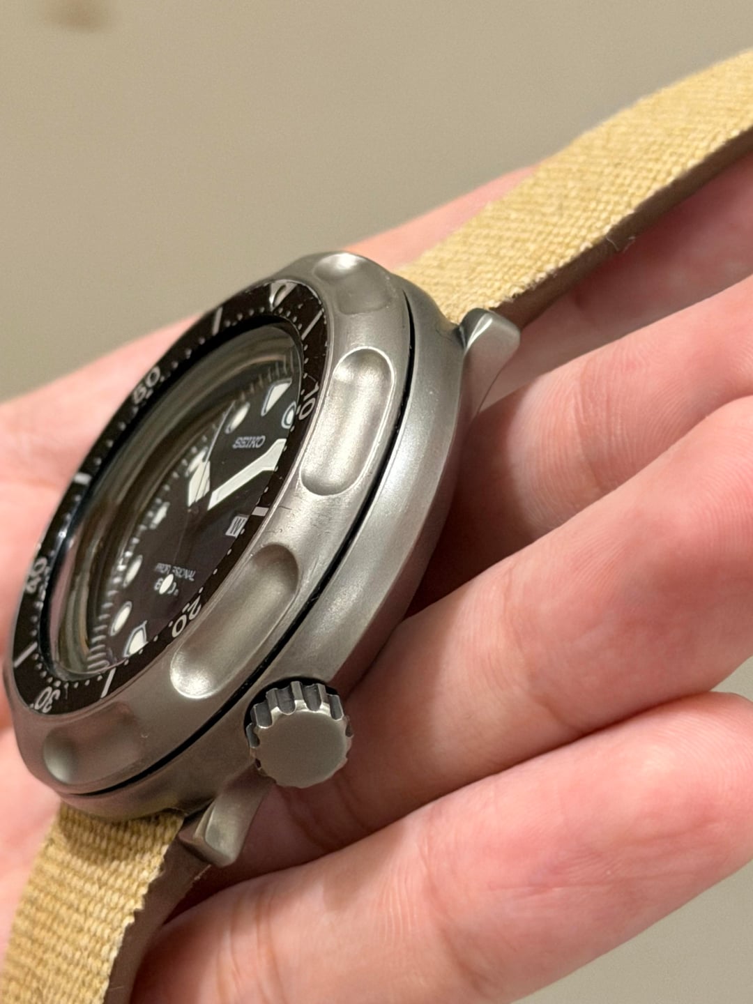 **CONDITION:** The watch was serviced 2 years ago and currently running well. The case is in good condition. The bezel has some scratches. The dial and hands are in good condition. **SPECS:** Manufacturer: SEIKO Movement: Quartz Case Material: Titanium Crystal: Hardlex Band: Canvas strap Box and paper: None Year: 1986 **DIMENSIONS:** Case (w/out crown): 44 mm Lug to Lug: 45 mm Lug Width: 22 mm Thickness: 15 mm **PRICE:** I’m asking for **1999 USD** shipping included (International). I accept PayPal FF, Zelle, Venmo, or Wire. **SHIPPING:** I’m based in the US but currently travelling in Vietnam, so the watch will be shipped from Vietnam (for US buyers, any tariffs will be covered, so buy with confidence). Shipping will usually take 3-5 business days.