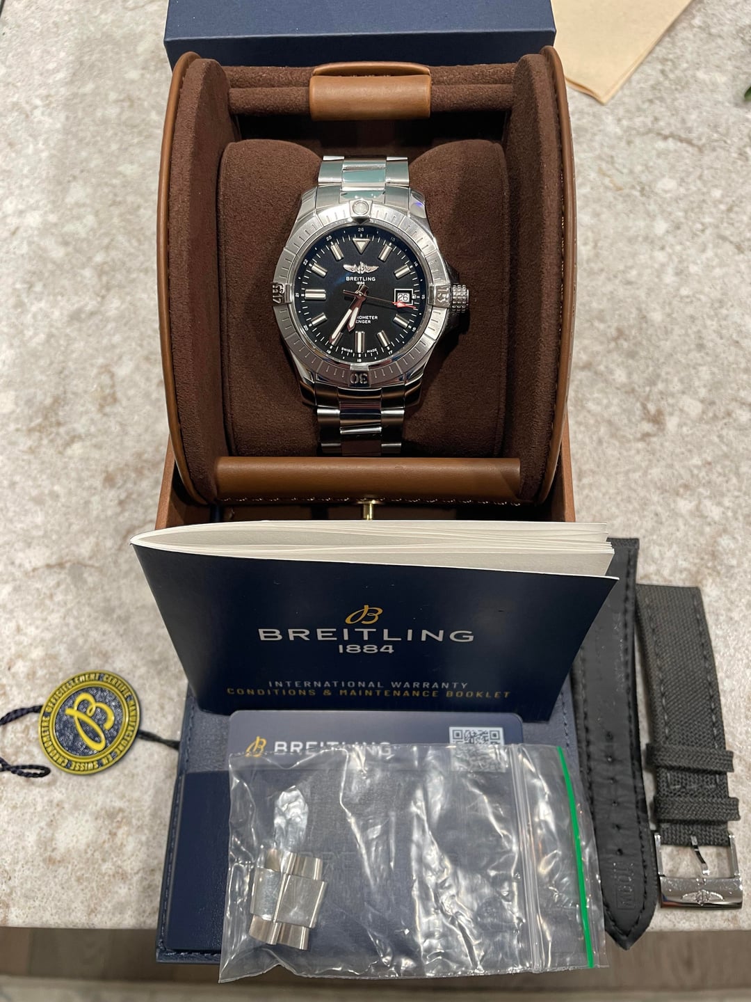 Breitling Avenger 43 Excellent condition, very faint wear to the clasp Full kit including the OEM textile band and extra links $2550 shipped, no trades