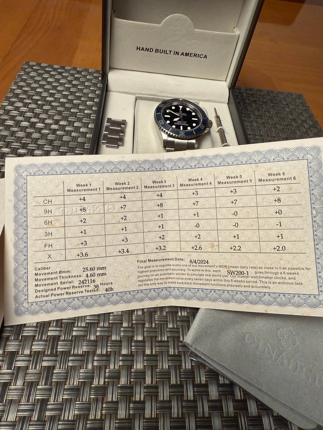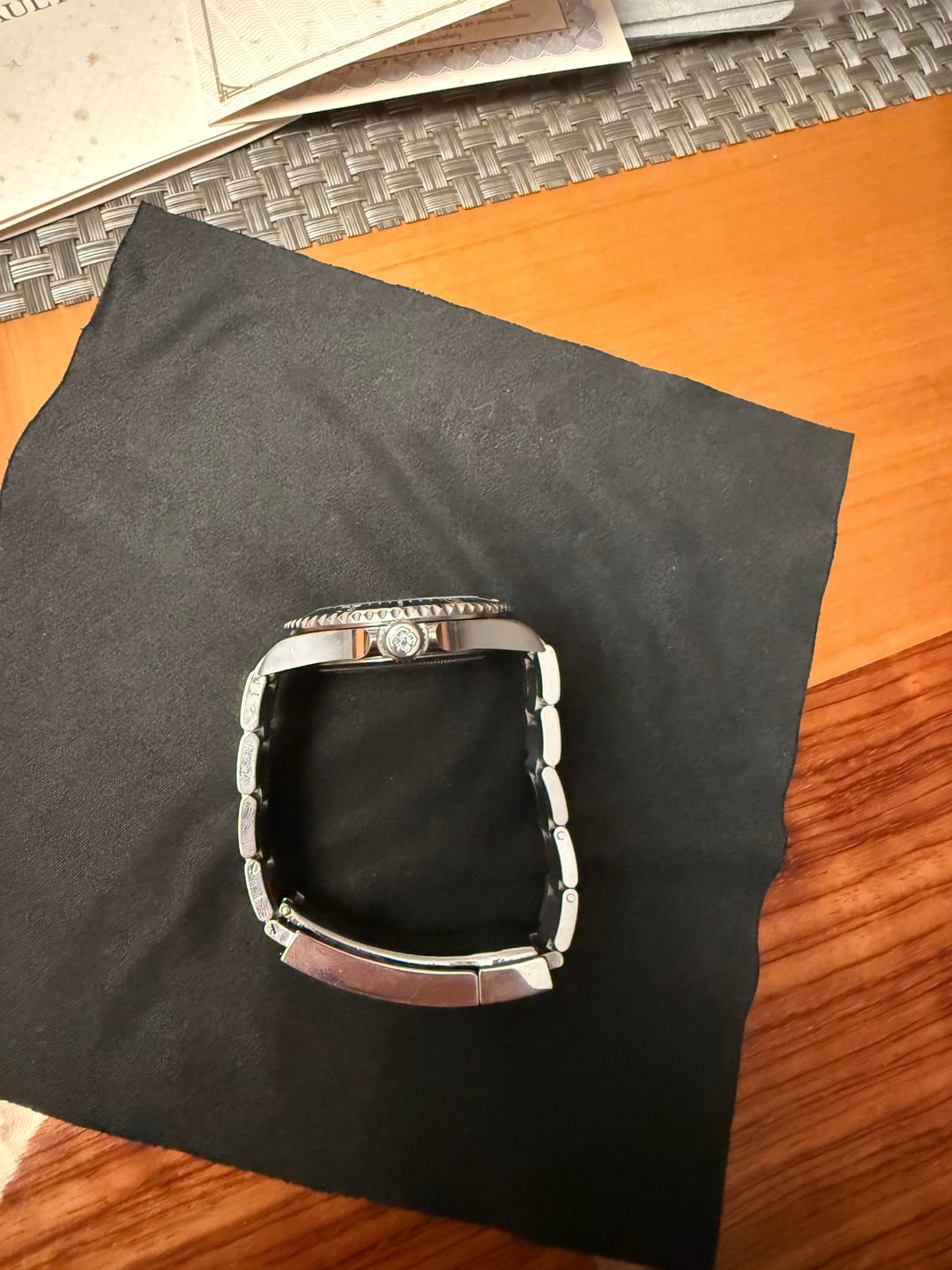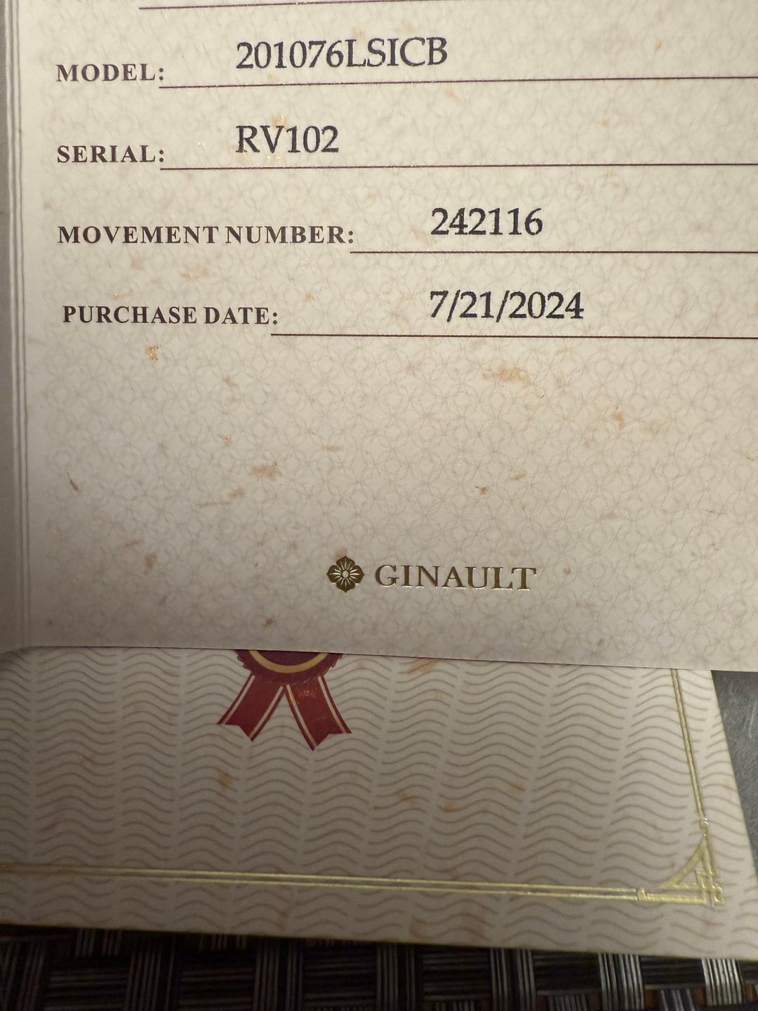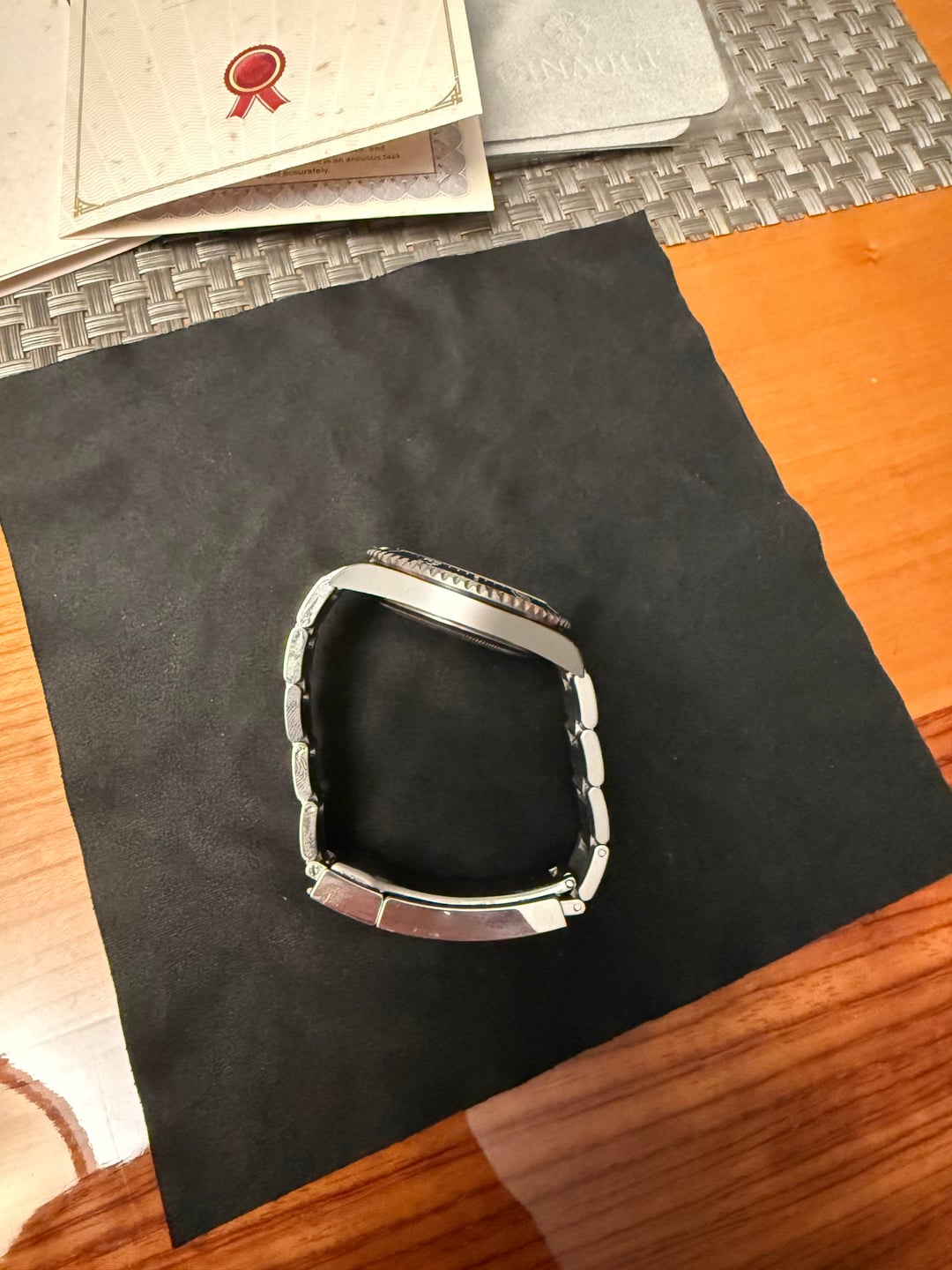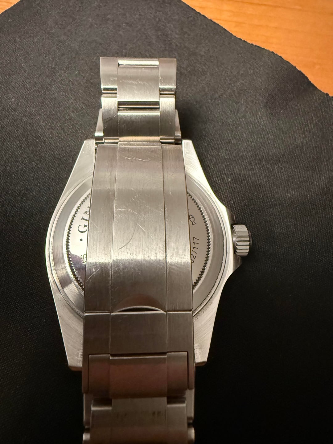 For sale is the Ginault Ocean Rover 2.5 with no date and the blue bezel option dated 2024. These are far and away the highest quality homages I’ve ever seen. Bezel is crisp, case is thin, sapphire has excellent AR coating, the glidelock clasp is snappy, and the movement is regulated to unbelievable timekeeping for an automatic watch. Condition: Crystal and bezel are pristine, but the bracelet and clasp are scratched up and well worn. Price: $1,099 shipped CONUS. Zelle strongly preferred. Full kit: Watch, extra links, microfiber cloth, card dated 2024, movement regulation report, box, and sleeve. Message me with any questions, but please leave a comment first so I can see your flair. Thanks for looking!