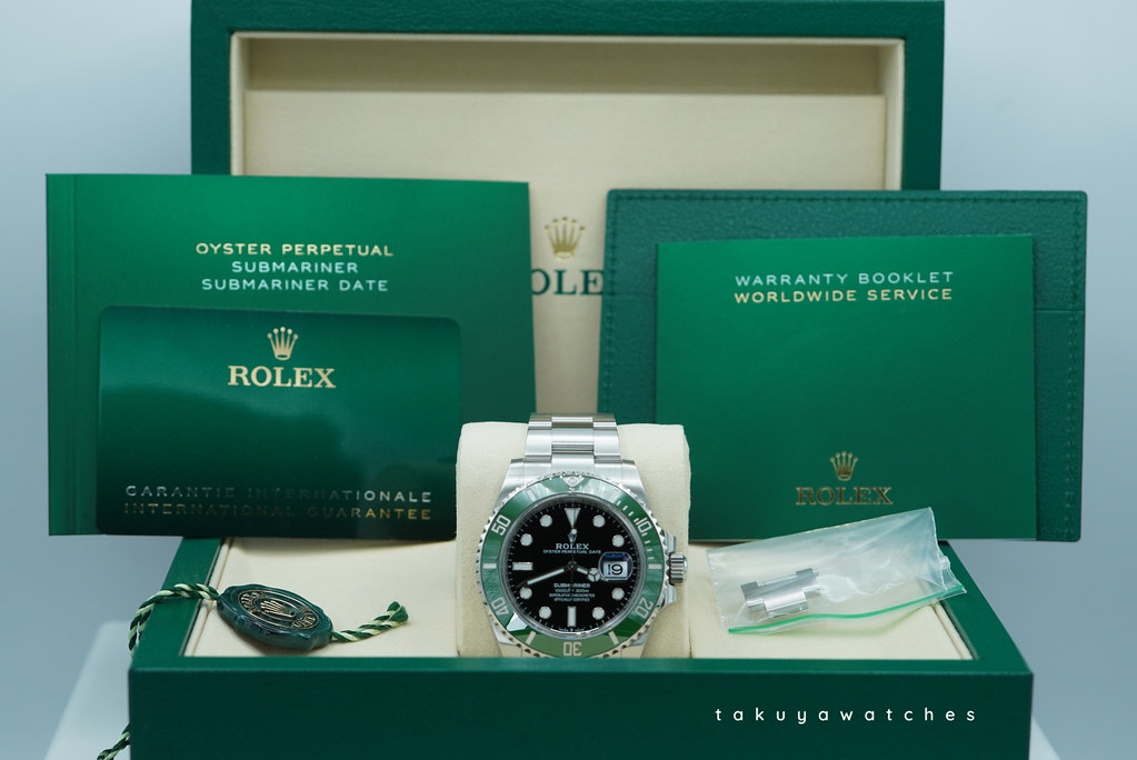 Complete Packages/Set (double boxes, Rolex Green Tag), & Complete Manuals/Papers with New Style Warranty Card Dated 05.2025. The Watch still has Plenty of Factory Warranty left.