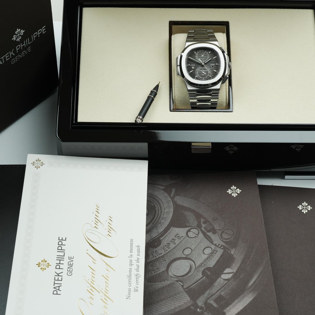 2020 Patek Philippe Nautilus 5990/1A-001 Complete Set MINT Timestamp: [https://imgur.com/XqNov5K](https://imgur.com/XqNov5K) The Patek Philippe Nautilus 5990/1A is a highly coveted blend of sportiness, elegance, and high-complication engineering. Crafted in stainless steel, it offers exceptional versatility for both business and leisure. Its 40.5mm case maintains the Nautilus’ signature slim profile, paired with an integrated stainless steel bracelet and folding clasp for a seamless, comfortable fit. The grey-gradient dial—with the iconic horizontal embossing, luminous markers, and sleek hands—delivers timeless sophistication and excellent legibility. Powering the 5990/1A is the self-winding caliber CH 28-520 C FUS, combining a flyback chronograph, dual-time display with day/night indicators, and a date synchronized to local time, backed by a 55-hour power reserve. A sapphire caseback showcases the movement’s refined finishing and the prestigious Geneva Seal. Watch comes a complete set with Inner/Outer Box, Booklet, Certificate of Origin, pusher. Watch is overall in mint condition. Please look at my pictures as I like to fully represent the exact condition of the watch through my photography. **Offered at $120,999 shipped in US or OBO.** Payments accepted: Wire or Direct Bank Transfer (Bank of America). Shipping is always FedEx/UPS overnight, fully insured. I am an avid enthusiast and collector and am not affiliated with any watch brand I post. **Always open to trades or purchases! Looking for Audemars Piguet, Rolex, Patek Philippe, FP Journe, Vacheron Constantin, and other luxury brands.** I guarantee every watch I sell to be 100% authentic. Follow me on IG: JJ\_Timepiece\_Co Call or text (941) 800-3931