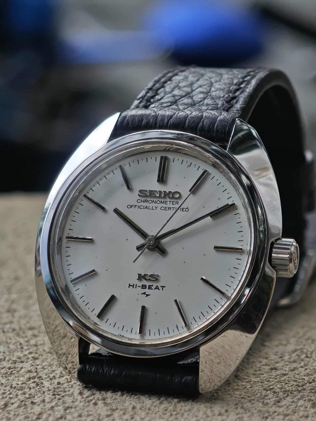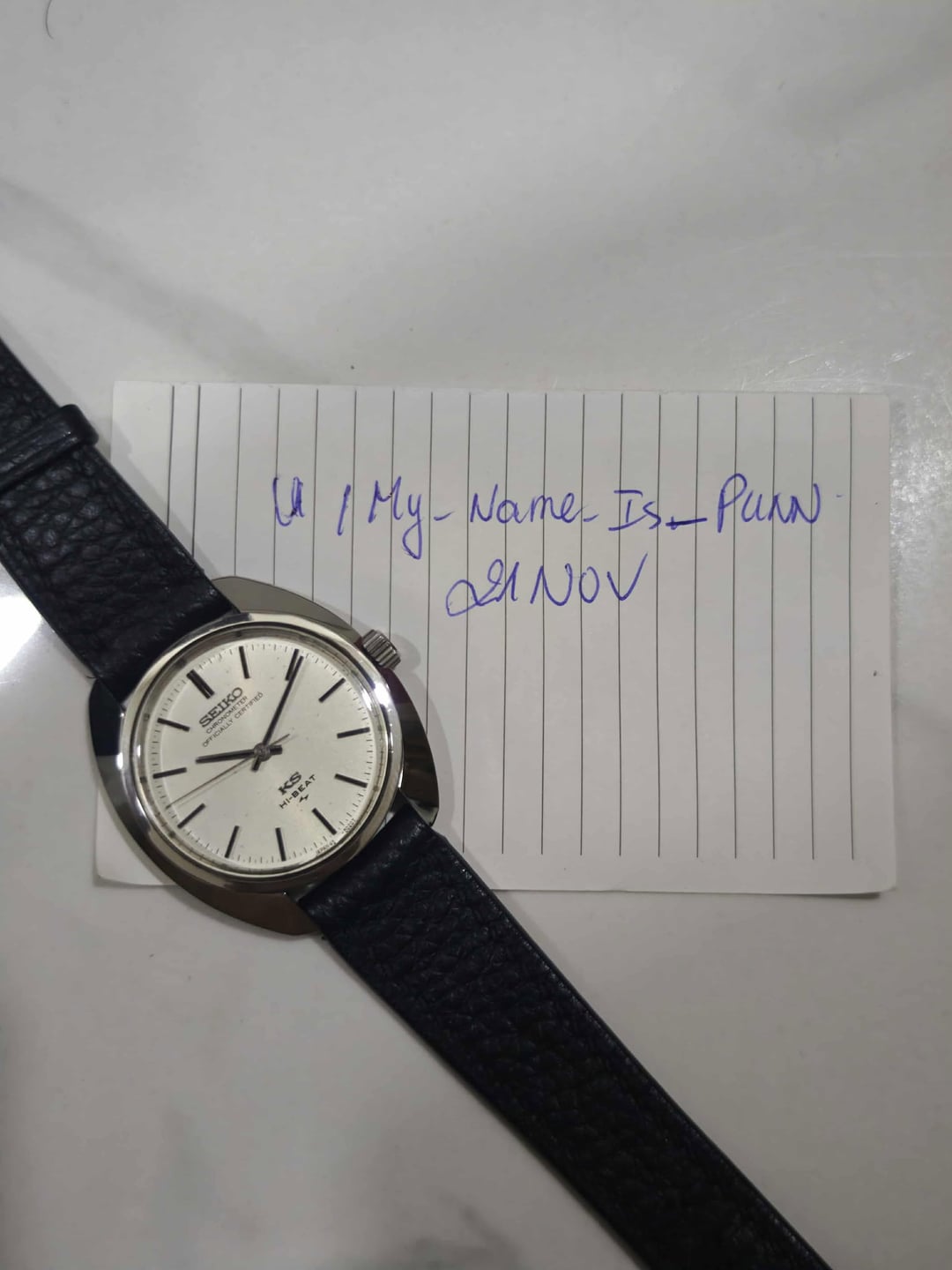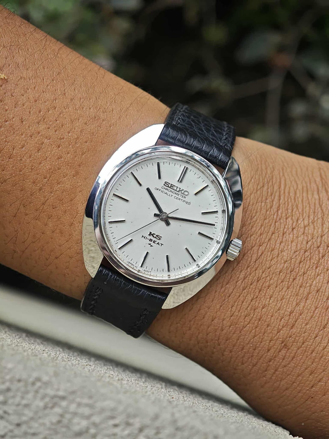 Up for sale is a King Seiko 45-8010 Chronometer from July 1970, one of the pinnacles of Japanese watchmaking. Quick Specs Condition: Beautiful vintage condition, sharp case lines, intact gold medallion caseback. Service: Freshly serviced, running strong. Movement: Manual-wind Caliber 4520A Hi-Beat (36,000 bph), chronometer-rated. Dial: Clean silver, no date window (pure dresswatch aesthetic). Details: KS signed crown, applied KS logo, \~36mm case size. Price: $600 shipped (tracked worldwide shipping included). Why this watch matters In the late 1960s, Grand Seiko (Suwa) and King Seiko (Daini) were in a heated rivalry to build the most accurate mechanical watches in Japan. The 45KS Chronometer series was the answer: a manual-wind, hi-beat chronometer-grade movement regulated to compete with the best Swiss houses. The Cal. 4520A is considered one of Seiko’s finest hand-wound calibers — beating at 36,000 bph for precision — and the “Chronometer” inscription is historically significant, as Seiko stopped using it after disputes with Swiss COSC. The 45-8010 reference stands out as one of the purest executions: no date window, sharp Grammar of Design case, and a gold medallion caseback. Collectors often call King Seiko the sleeper line, but this model shows it deserves to be mentioned in the same breath as vintage Grand Seiko. A true gem from July 1970 — clean, serviced, and ready for the next collector.