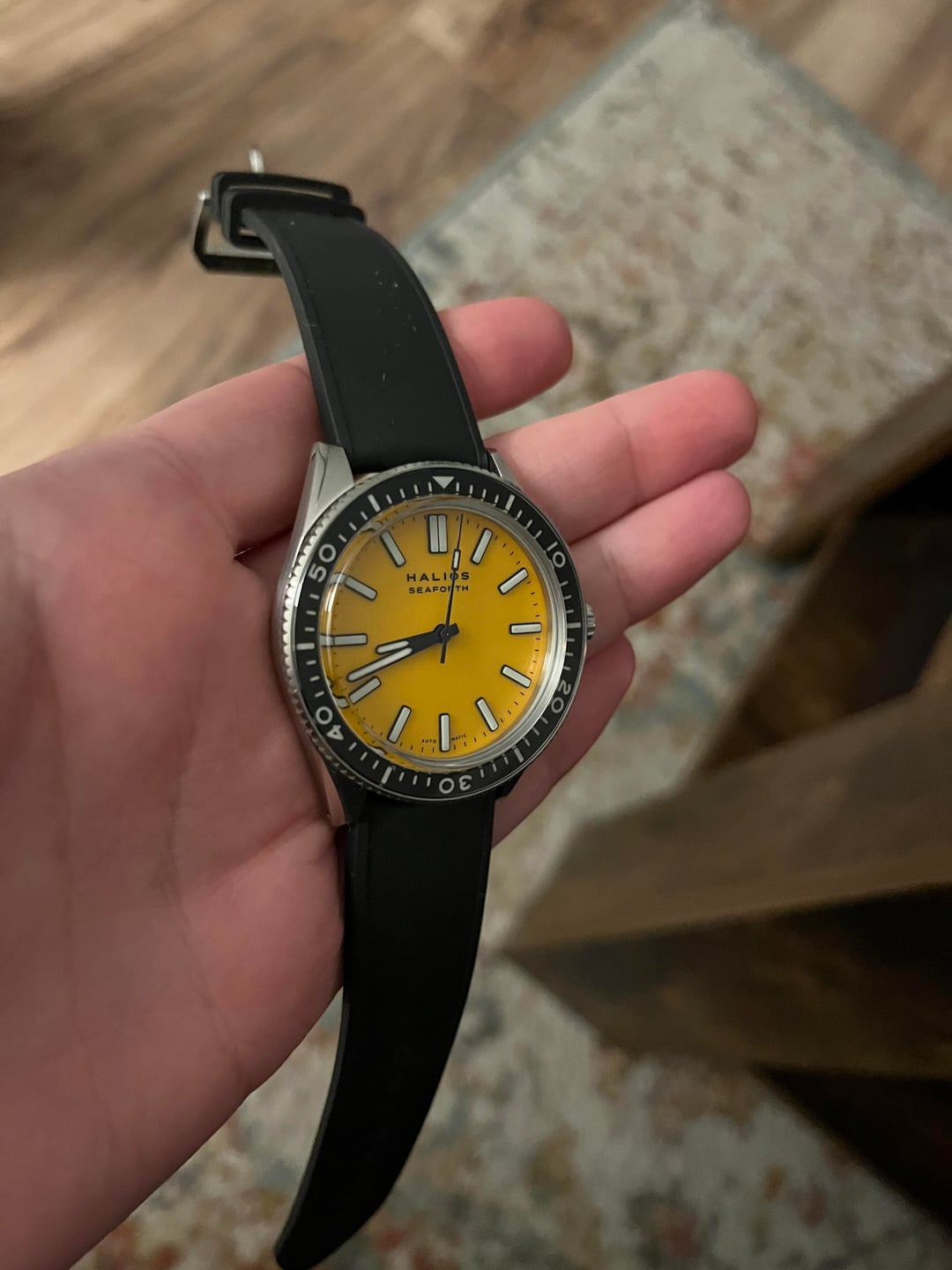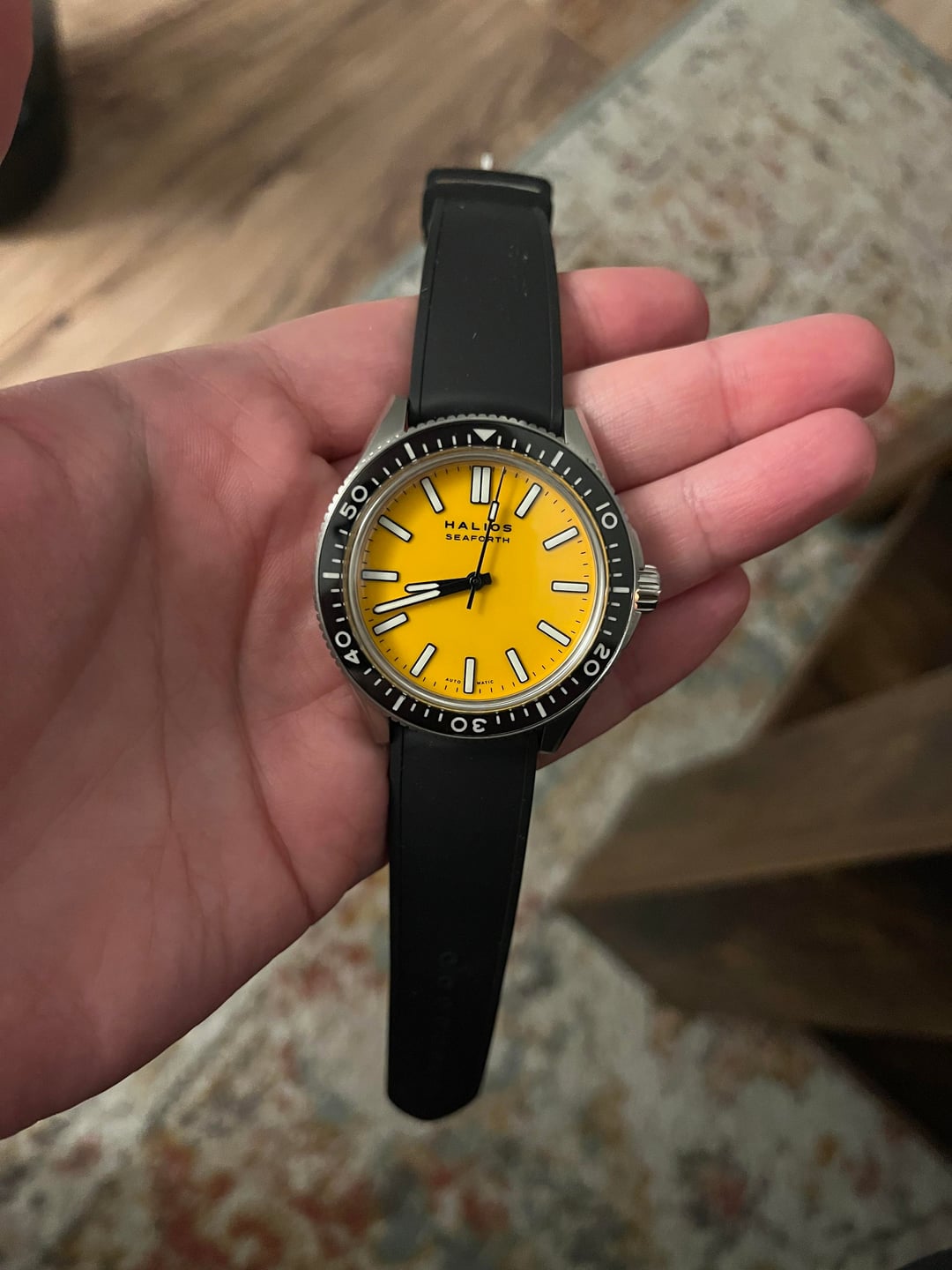 Hi Folks! Currently looking to sell 2 halios seaforths pictured above as is! The watches are both in great condition. Halios Seaforth Gen 3 - Sunburst Rhodium dial on a blue tropic strap. Currently discontinued with a slight scuff near 3pm on the bezel Halios Seaforth Gen 4 - Bahama Yellow dial on a black rubber AND the matching SS bracelet! Current out of stock Asking a negotiable $1500 for both pieces - shipped and insured via Zelle PayPal is okay if you have a decent number of transactions :) Not really looking to trade but am open to offers If you are only interested in 1 of the watches, please message me and we can discuss! If you have any questions, please let me know!