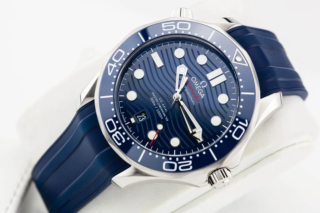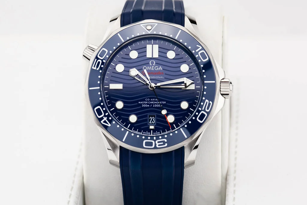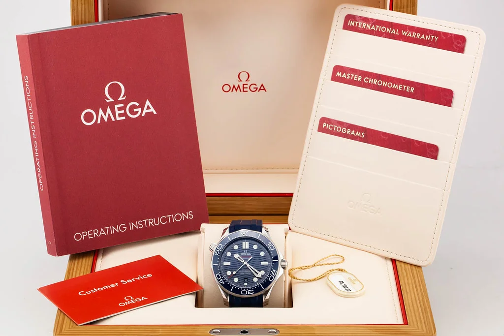 Up for sale is a brand new Omega Seamaster 300 Blue Wave Dial on Rubber Strap, reference # 210.32.42.20.03.001. It comes complete with all boxes, papers, booklets, hang tag and Omega Warranty Card dated November 2024.