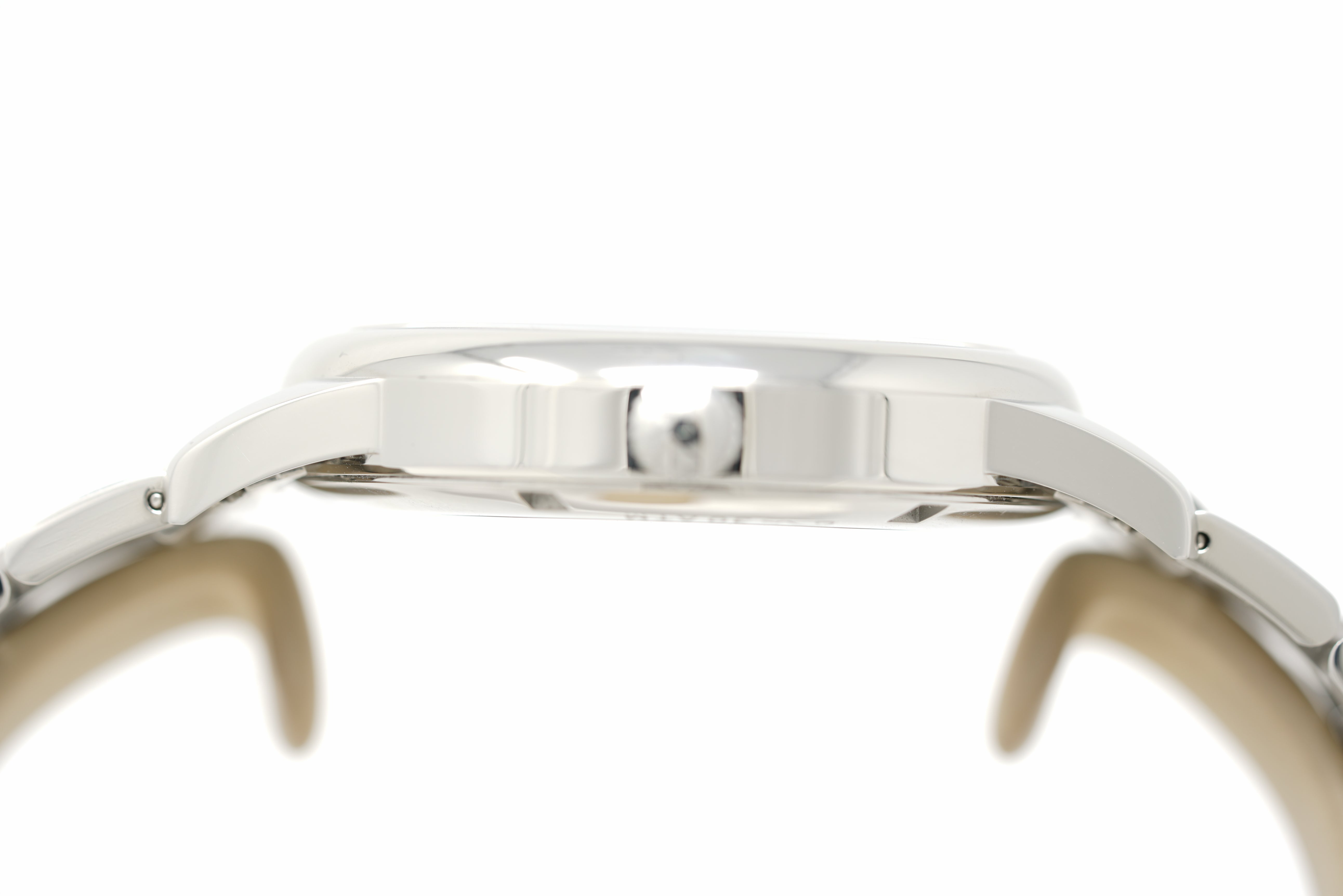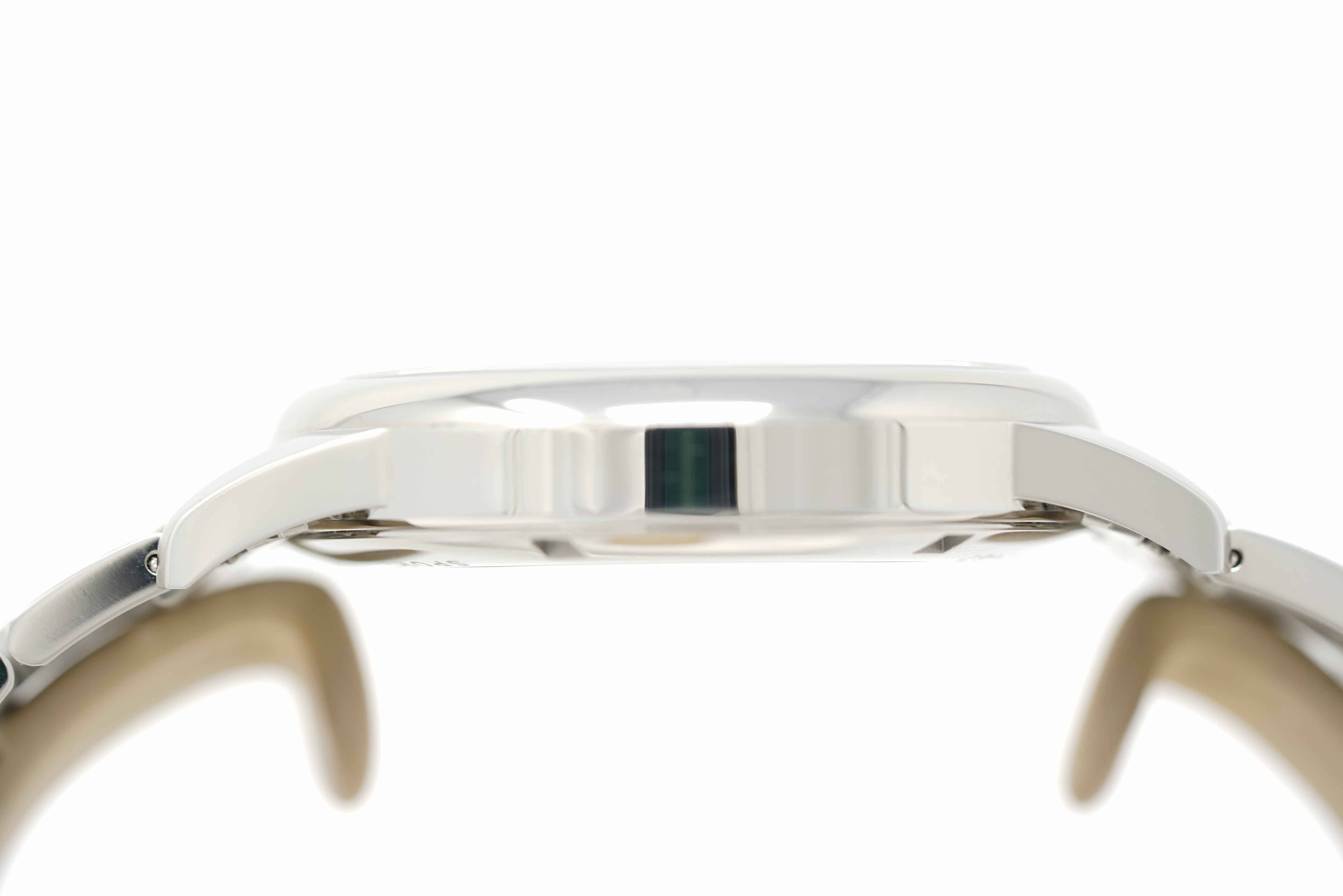 This pre-owned watch is in 95% condition due to faint marks on the back of the lugs and throughout the case. The bracelet is in 97% condition due to faint marks on a few of the links. Originally purchased in November 2025, this watch comes with its inner and outer box, warranty card, and the one-year Topper Pre-Owned Select warranty.