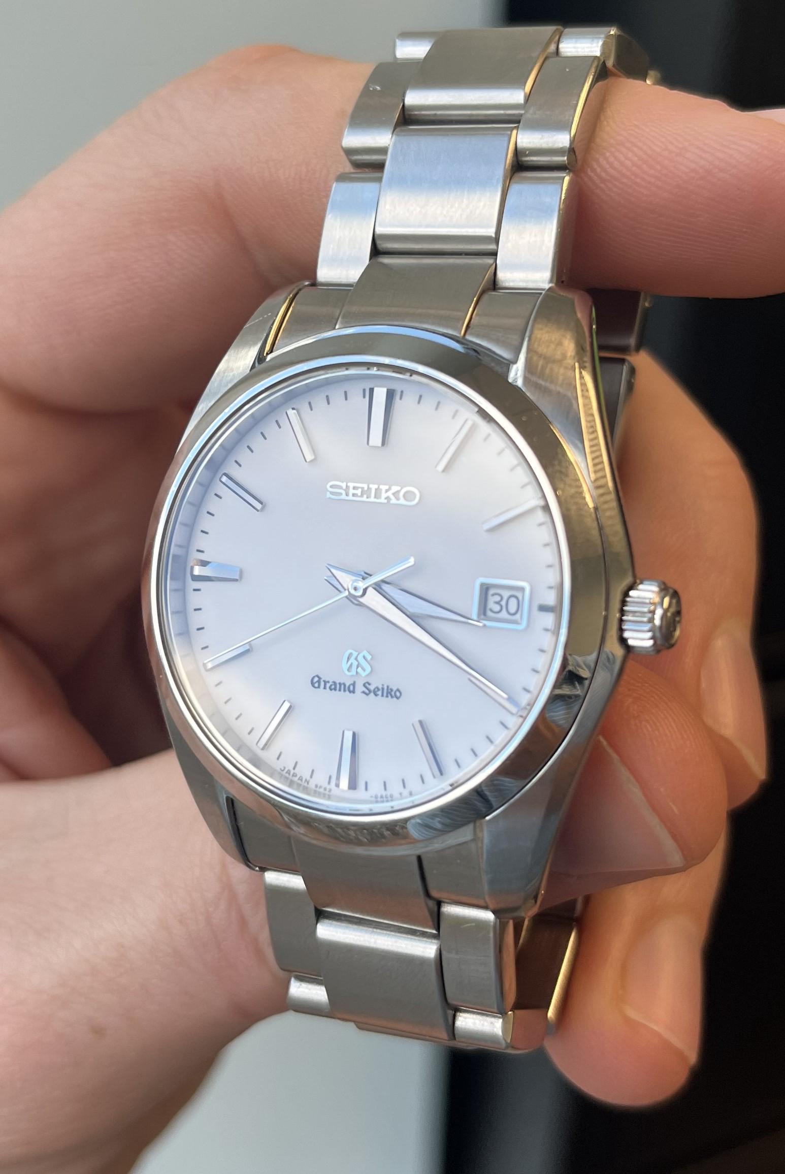WTS my Grand Seiko SBGX059 -- it's a beautiful model with a well-balanced, crisp white dial. The finishing on the case (37mm) and hands is exceptional. You can see the light dancing off the intricately brushed/polished indices, and the hands have been honed to a razor-sharp edge. Keeping time within spec of +/- 10 seconds per YEAR. Such a beautiful watch. Personally, I like the look of the “Seiko” branded model because it provides better dial balance than its successor, the SBGX259. This watch has been sized to 6.75” and includes three additional links (10mm each). Battery was recently changed. Comes with box but no papers -- the watch was originally released pre-2010, so it has long been outside of warranty. Edit to include images: [https://imgur.com/a/grand-seiko-sbgx059-e2xO6fz](https://imgur.com/a/grand-seiko-sbgx059-e2xO6fz) Price is firm at $1199 shipped and insured, CONUS only. Accepting Zelle or cash, located in NC. Please note, with a purchase here you can sidestep the 15% duties applied to purchases from outside of the USA. You can also rest easy knowing UPS will not destroy your package on a whim.