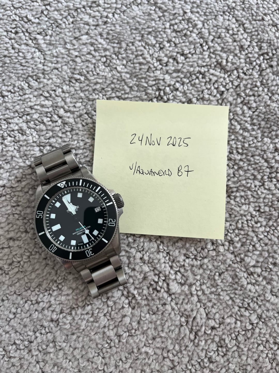Up for sale is a Tudor Pelagos Ultra - Black Dial - 43mm - M2543C1A7NU-0001 Watch functions perfectly mechanically, without issue. Includes full set with watch (fully linked), box (inner and outer), rubber strap, rubber diver extension, manual, warranty booklet, and card (dated 08/2025). Fantastic condition with minor hairlines, if any, on clasp, case, and bracelet. $4900 plus shipping Thanks!