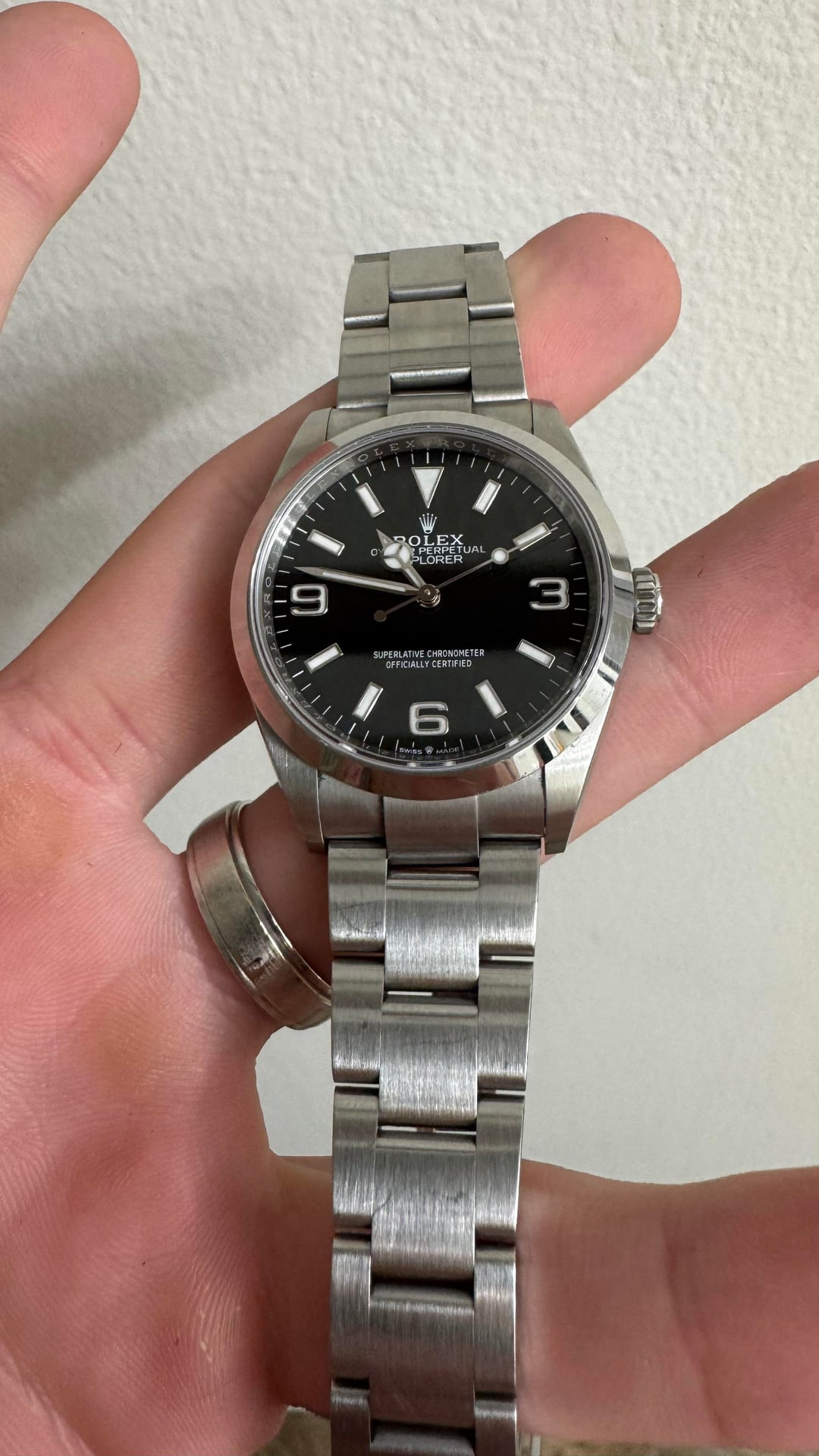 Hi WatchEx! The community properly educated me in PMs why I should drop price. I am letting go my Rolex Explorer 1. The watch is running perfect at +-1 sec/day (or so.) I am always happy to answer questions and make the buying experience as best as possible. How I sell my watches is that I do not want any payment until I send you photos of me ready at the post office. That way the process goes payment -> shipping receipt delivered within 10 minutes. Why am I selling? Honestly, where I grew up a little bug in my head wearing any watch over like $1,500 tells me that I am wearing something obnoxious on my wrist. So this amazing piece deserves a new home. This watch has regular wear from desks. I wear my watches, and I want this to go to a home that will also wear the watch. There are surface level scratches which I have tried to show in the photos below. **Original Ask Price:** **~~$7,850 shipped.~~** **Payment with F&F or Zelle or Wire.** **New Ask Price: $6,999 shipped. Payment with F&F or Zelle or Wire.** I am always willing to FaceTime or text or send more photos. I have plenty of references out side of reddit as well. Here is a Google Drive link: [https://drive.google.com/drive/folders/1a3L4QFDwcOScwcbVVJhT7EtoqVLDTai7](https://drive.google.com/drive/folders/1a3L4QFDwcOScwcbVVJhT7EtoqVLDTai7) IMGUR: [https://imgur.com/a/explorer-1-36mm-ph2W0LA](https://imgur.com/a/explorer-1-36mm-ph2W0LA) Video: [https://imgur.com/myQJiQx](https://imgur.com/myQJiQx)