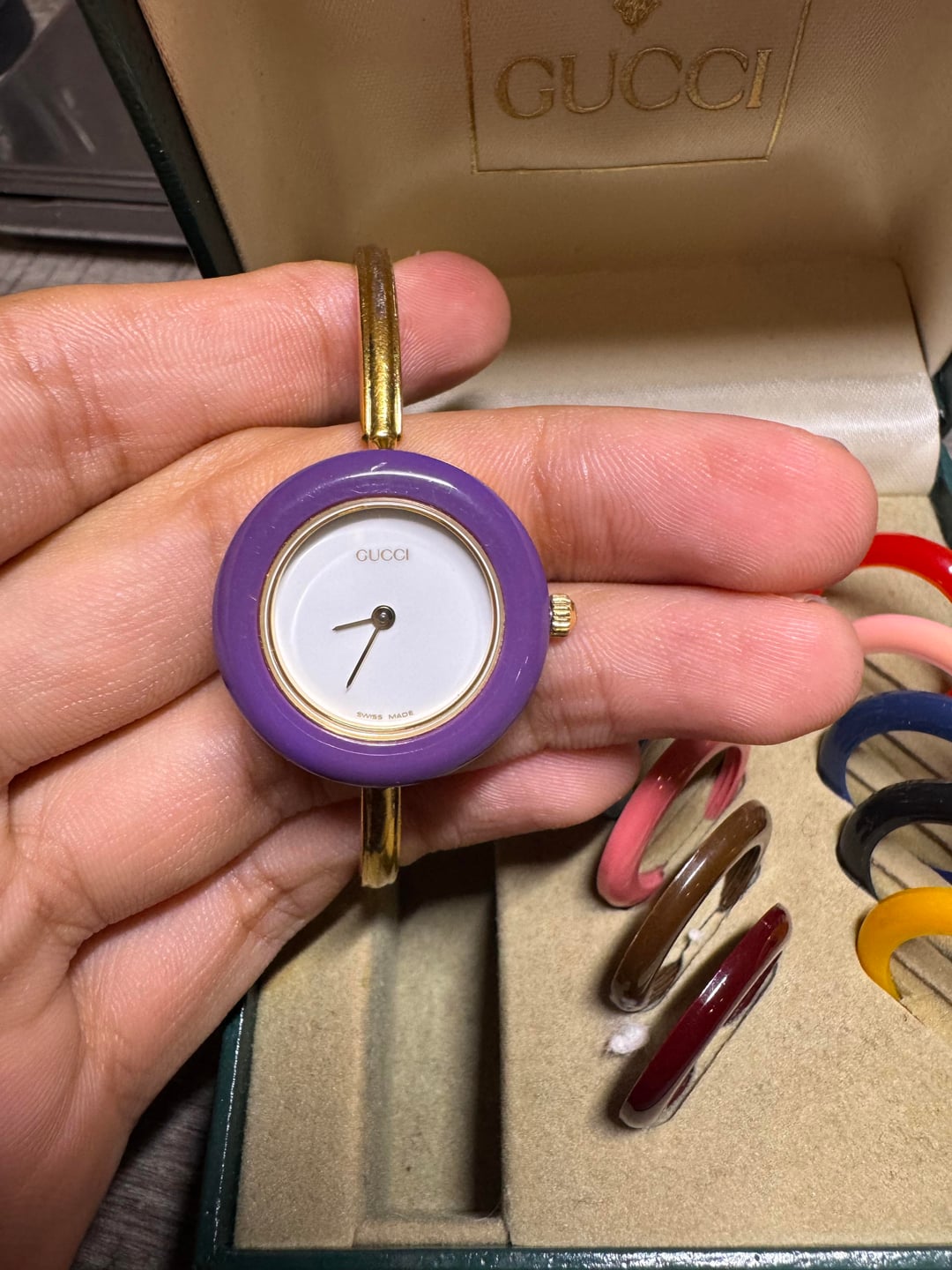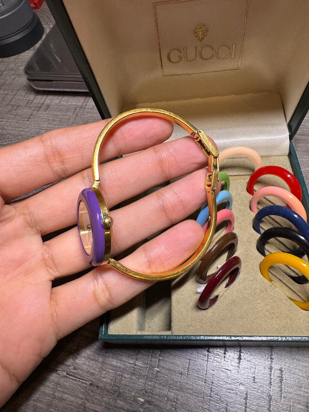 ![Thumbnail [WTS/WTT] Gucci 11/12.2 (1100L) Interchangeable Bezel Bangle Watch with Original Box and Bezels 4](https://cdn-cf.watchpatrol.net/120x120/img/full/41553a8e44a12a794e7ad8c96d7e65166579ecf1.jpg)