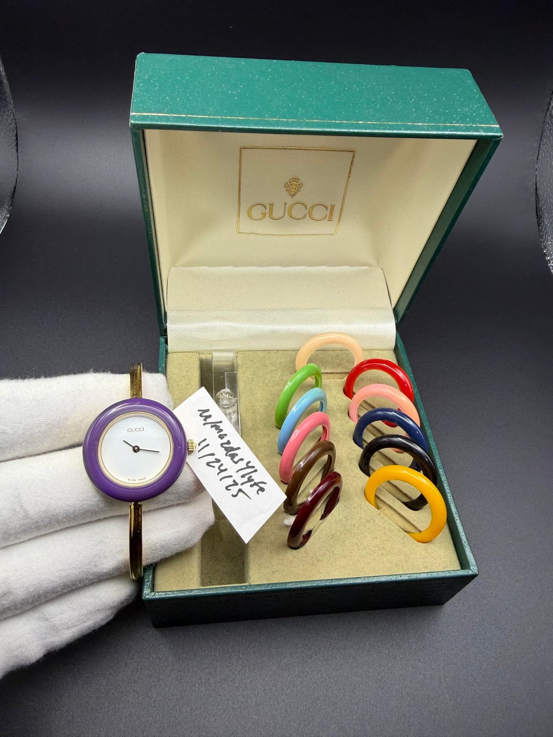 ![[WTS/WTT] Gucci 11/12.2 (1100L) Interchangeable Bezel Bangle Watch with Original Box and Bezels 5](https://cdn-cf.watchpatrol.net/600x600/img/full/28a8869333a5724d459f95a52332221761551ac1.jpg)