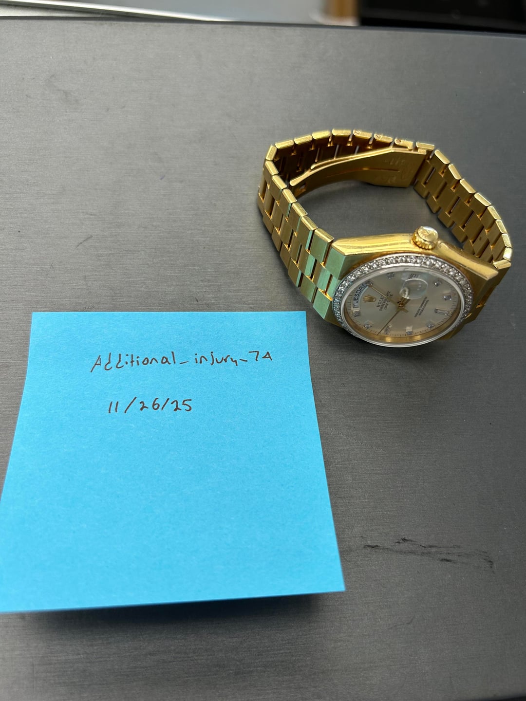 Condition: bezel and case is clean. Crystal has no signs of scratches. Bracelet has small signs of wear. The watch is currently unpolished with about 12.5k in gold. See photos for macro condition. Box & Papers: Only comes with the papers, I forgot to take photos of that so if you need a photo of those let me know. 💰 Price: $16k bank wire would be best U.S. shipping included, no tax or import charges for domestic buyers. 💳 Payment: Zelle preferred. PayPal G&S available as well. We can also do bank wire. 📦 Shipping: Ships via FedEx Ground with signature confirmation. Usually ships same or next business day. Expedited options available upon request. 🕒 Timestamp: Included in the photo set. Additional timestamps available if needed. Feel free to DM with any questions. Thanks for looking!