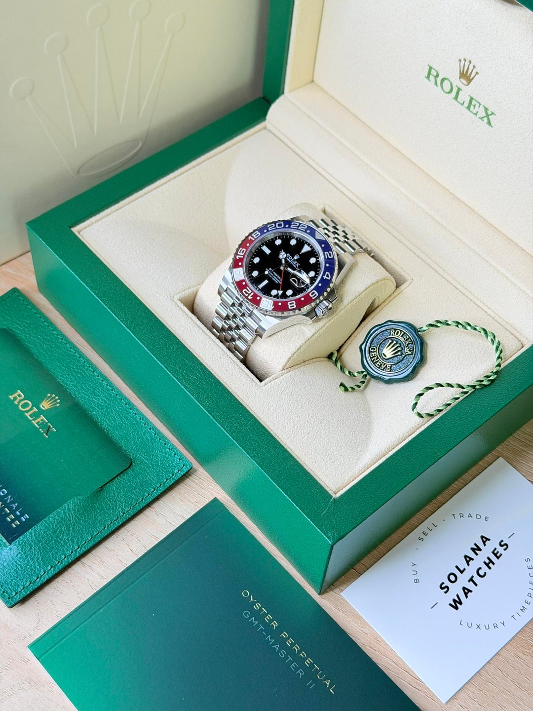 Selling this beautiful 40mm Rolex GMT Master II reference 126710BLRO /126710 on jubilee bracelet, aka the Pepsi. **This Pepsi is in good pre-owned condition**. **It comes as a complete set**, including the Rolex green box, outer box, booklet, warranty booklet, leather wallet, warranty card dated 2023, and the hangtag. **Photos:** * [Album](https://imgur.com/a/2023-pepsi-nov2025-WVsgm6Y) * [Timestamp](https://i.imgur.com/YBjnnPe.jpeg) * [More on my Instagram @SolanaWatches](http://find%20me%20on%20Instagram%20@SolanaWatches) **Price is $21,500** delivered in the US. **I am a full-time watch dealer, and I have completed many transactions here. **I can provide additional references upon request. **Feel free to contact me** via PM here so we can exchange numbers and get on the phone or do a video call. You can also [find me on Instagram @SolanaWatches](https://www.instagram.com/solanawatches/). _Private showroom located in San Diego, CA. Reach out to schedule an appointment._ _All my watches are guaranteed 100% authentic, and I will stand by their authenticity. _ _California buyers without a seller’s permit are subject to sales tax._