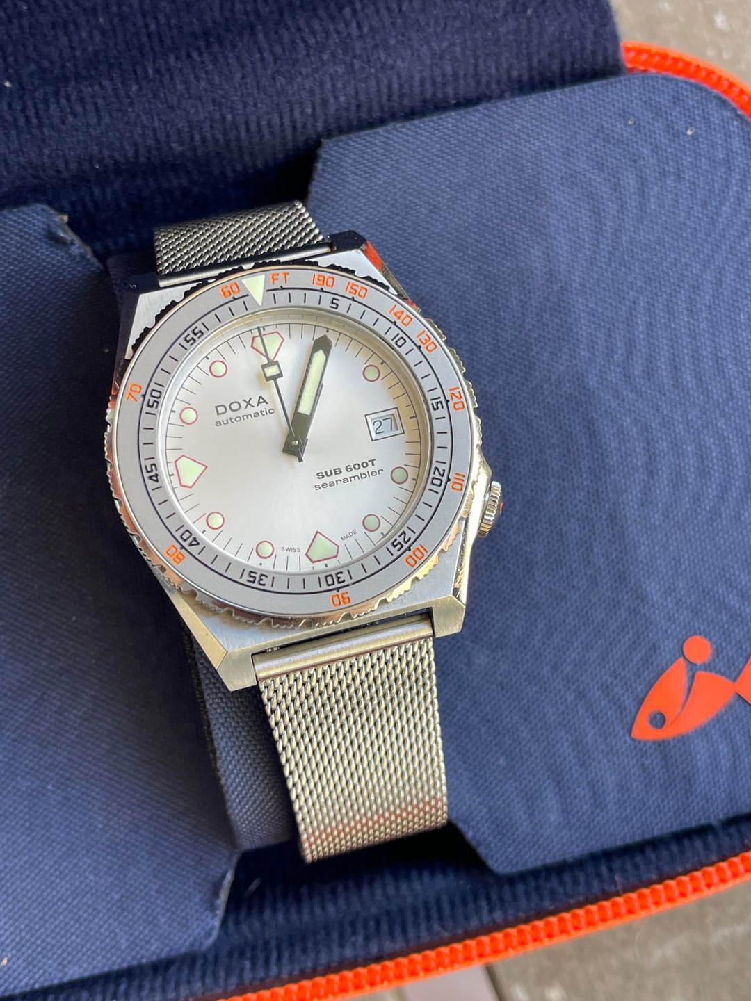 For sale: Doxa 600T Searambler. Really nice looking piece. Includes inner box, card holder, lanyard. Asking $1100 + your label, ships from TX