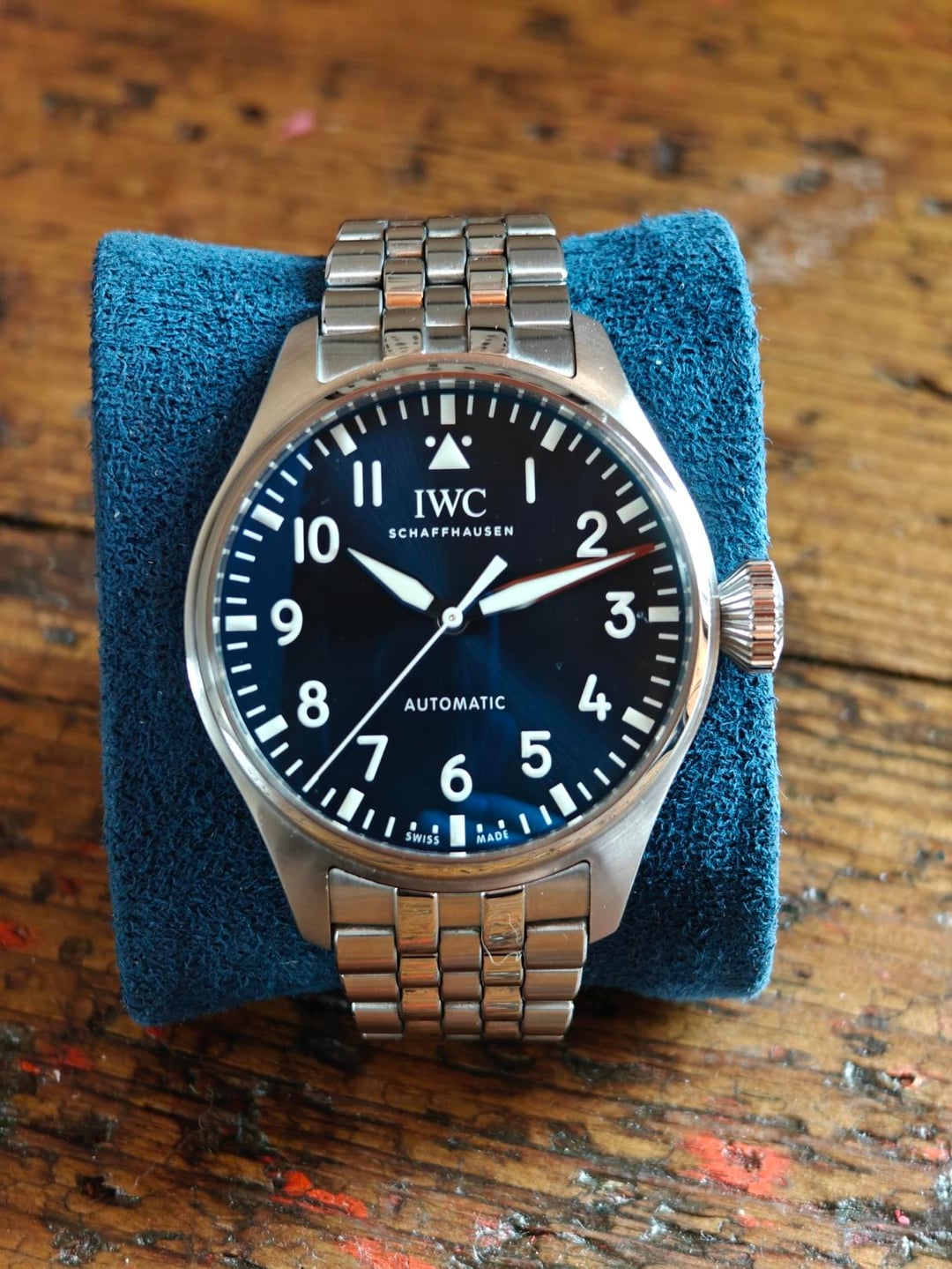Up for sale is an IWC Big Pilot 43 Ref. IW329304 — the modern, wearable take on IWC’s legendary aviation watch. At 43mm, it retains the bold Big Pilot DNA while offering improved comfort and versatility. Featuring the clean blue dial, oversized crown, and in-house Caliber 82100 movement, this piece delivers both heritage and modern engineering. Comes complete with 2024 box and papers. Condition is great — running strong, clean throughout, and ready for wrist time. A statement pilot’s watch with unmistakable IWC presence. 📐 Specs: – Ref. IW329304 – 43mm stainless steel case – Blue dial with luminous markers – Oversized pilot crown – Caliber 82100 in-house automatic movement – 60-hour power reserve – Sapphire crystal front and back – 2024 box & papers – Great condition 📦 Terms: – 6,588 shipped & fully insured – Wire or Zelle only – Trades welcome — RLX, AP, Omega, Panerai, etc. – Plenty of references available – Located in Massachusetts – Happy to provide timestamped pics or video call to confirm condition 🔥 Modern pilot’s icon with historic roots — perfect for collectors who want Big Pilot presence in a more wearable size DM with intent or comment below. Serious offers only. #IWC #BigPilot #IW329304 #PilotWatch #TradesWelcome