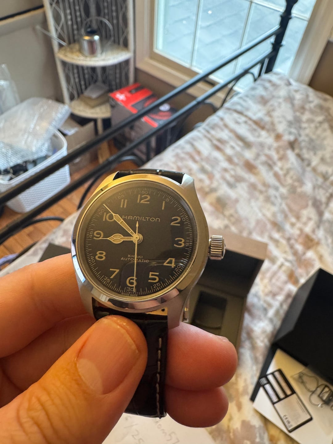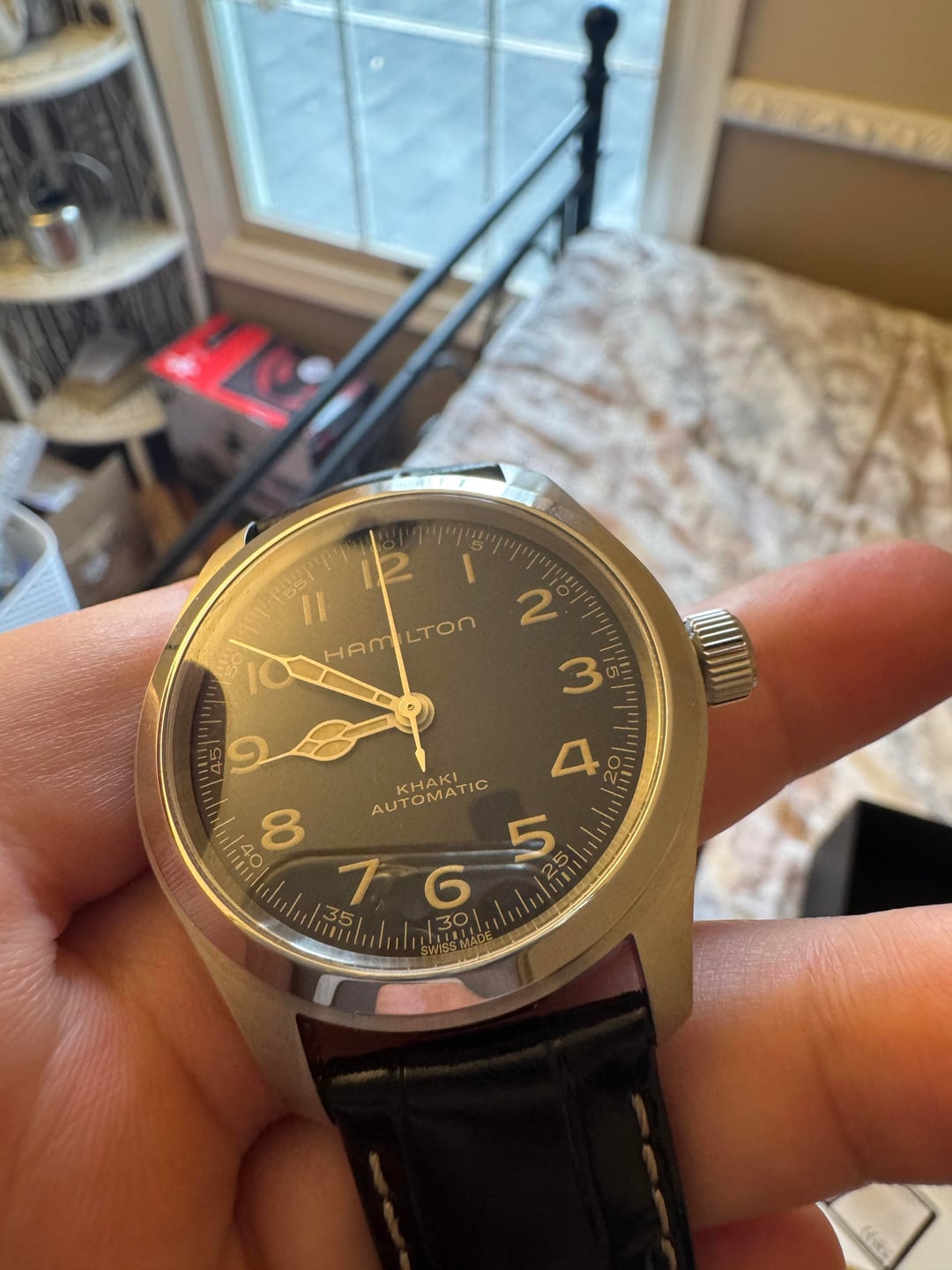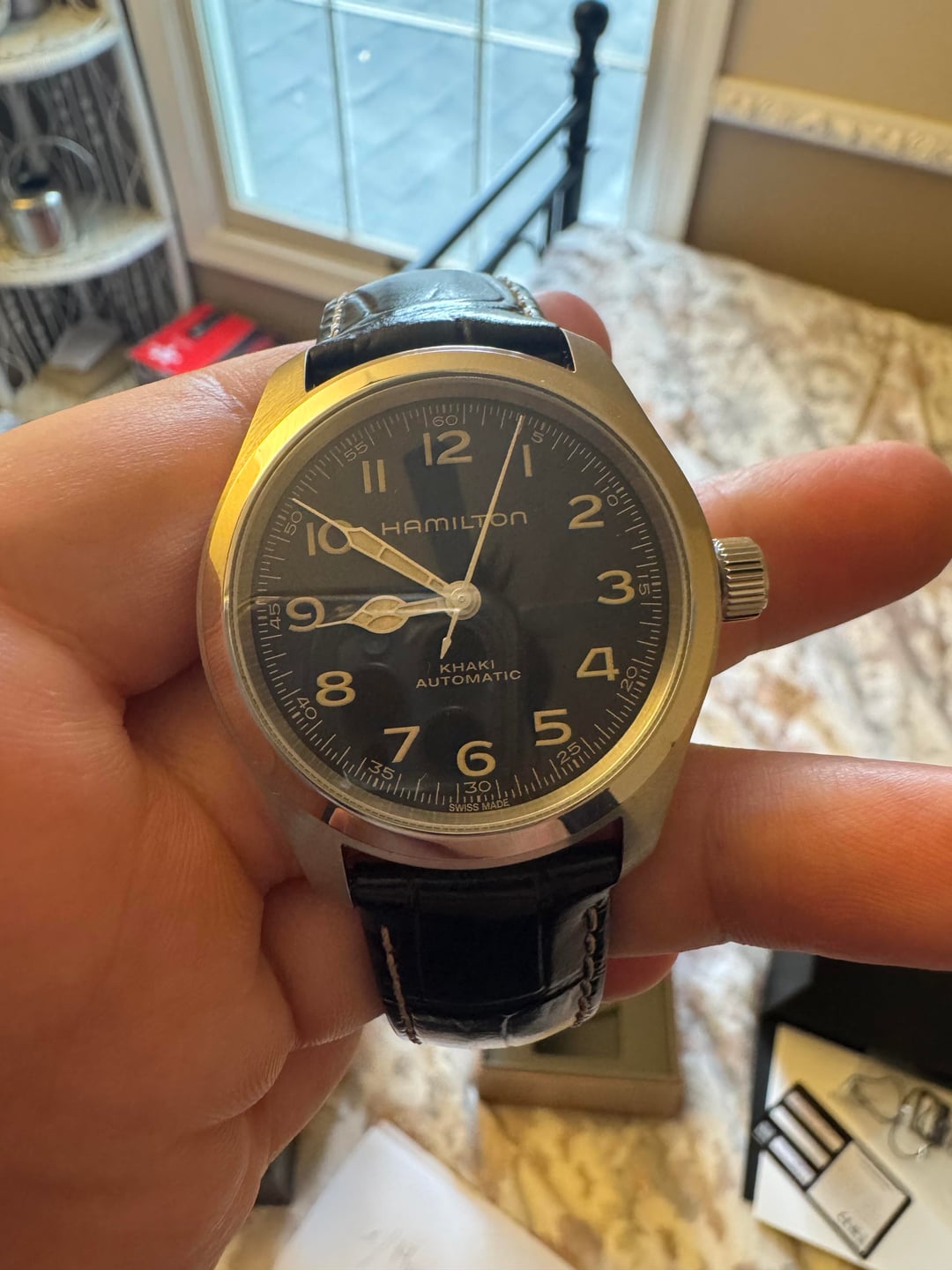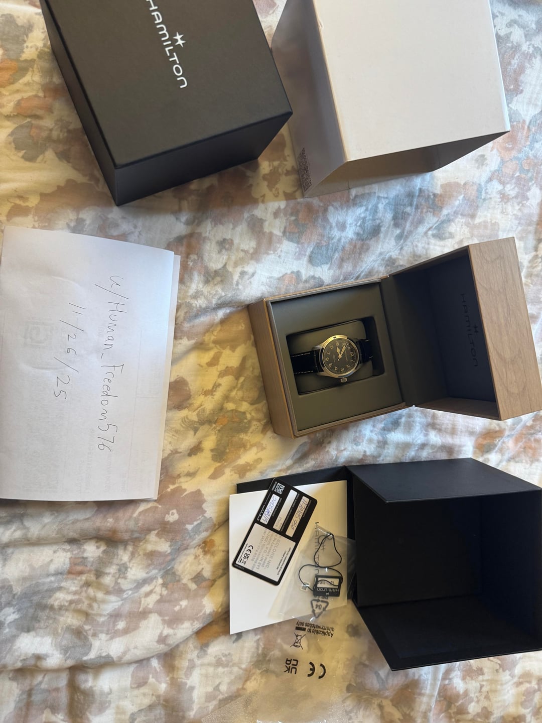 \[WTS\] Hamilton Murph 38mm Full kit with warranty card and box. Iconic watch in like new condition. Bought new and worn only twice / no scratches. Comes with box and papers. Asking $725 shipped Zelle or venmo preferred.