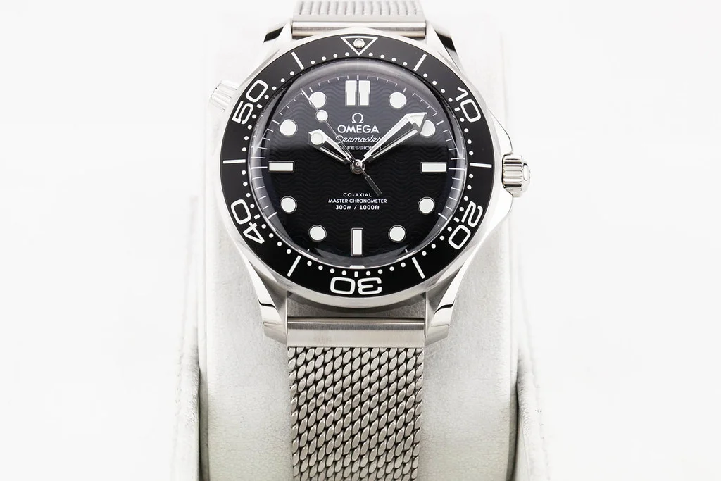 Up for sale is a brand new Omega Seamaster 300M 42mm Black Aluminum Dial & Bezel on Mesh Bracelet, reference # 210.30.42.20.01.010. It comes complete with all boxes, papers, booklet, hang tag and Omega Warranty Card dated November 2025.