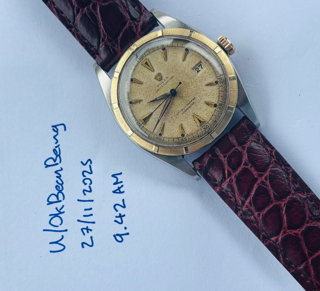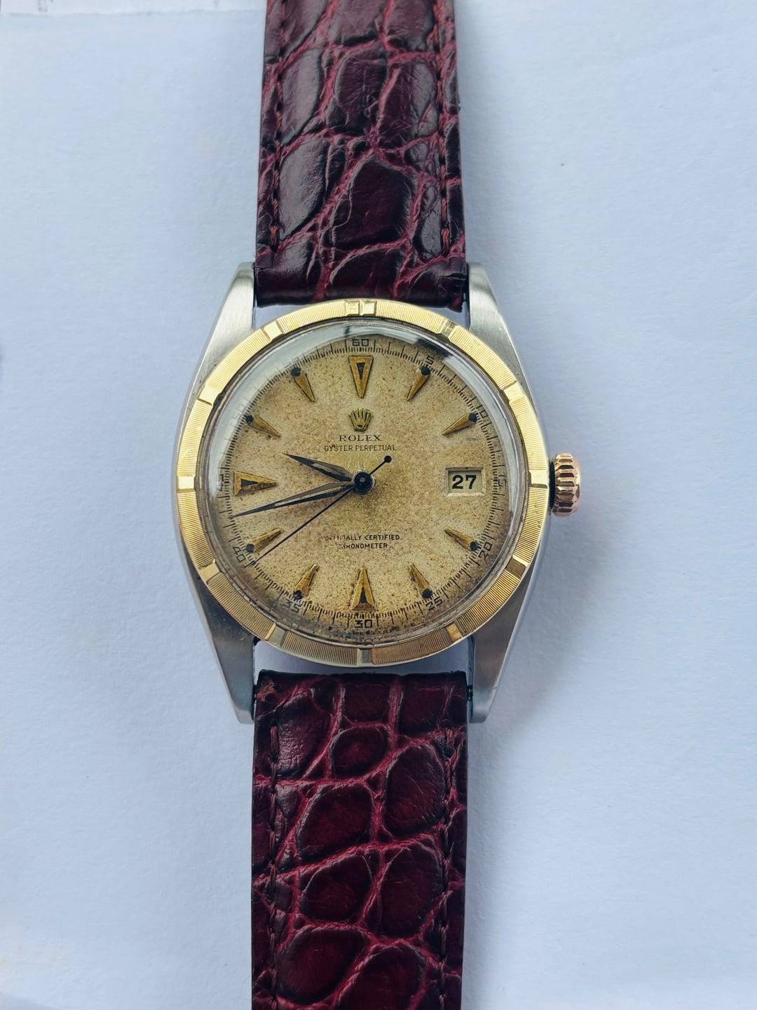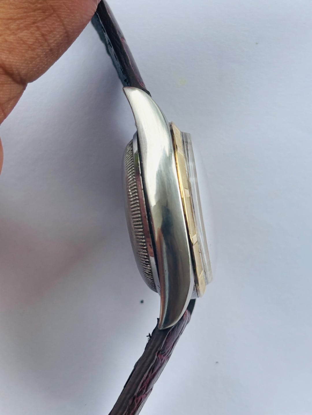 Hello everyone! Quite a nice yet old watch for sale. A 50s Rolex pre-Datejust Ref. 6075 Not in the usual mint condition as the dial shows patina. Nothing too bad the details are still visible. Working well and keeping time. 36mm the case is stainless steel with the bezel being solid gold. Expecting $3500 firm Buyer pays shipping Shipping can be arranged worldwide I ship from LK (FedEx tracked shipping) Feel free to reach out for any inquiries and clarifications. Cheers!