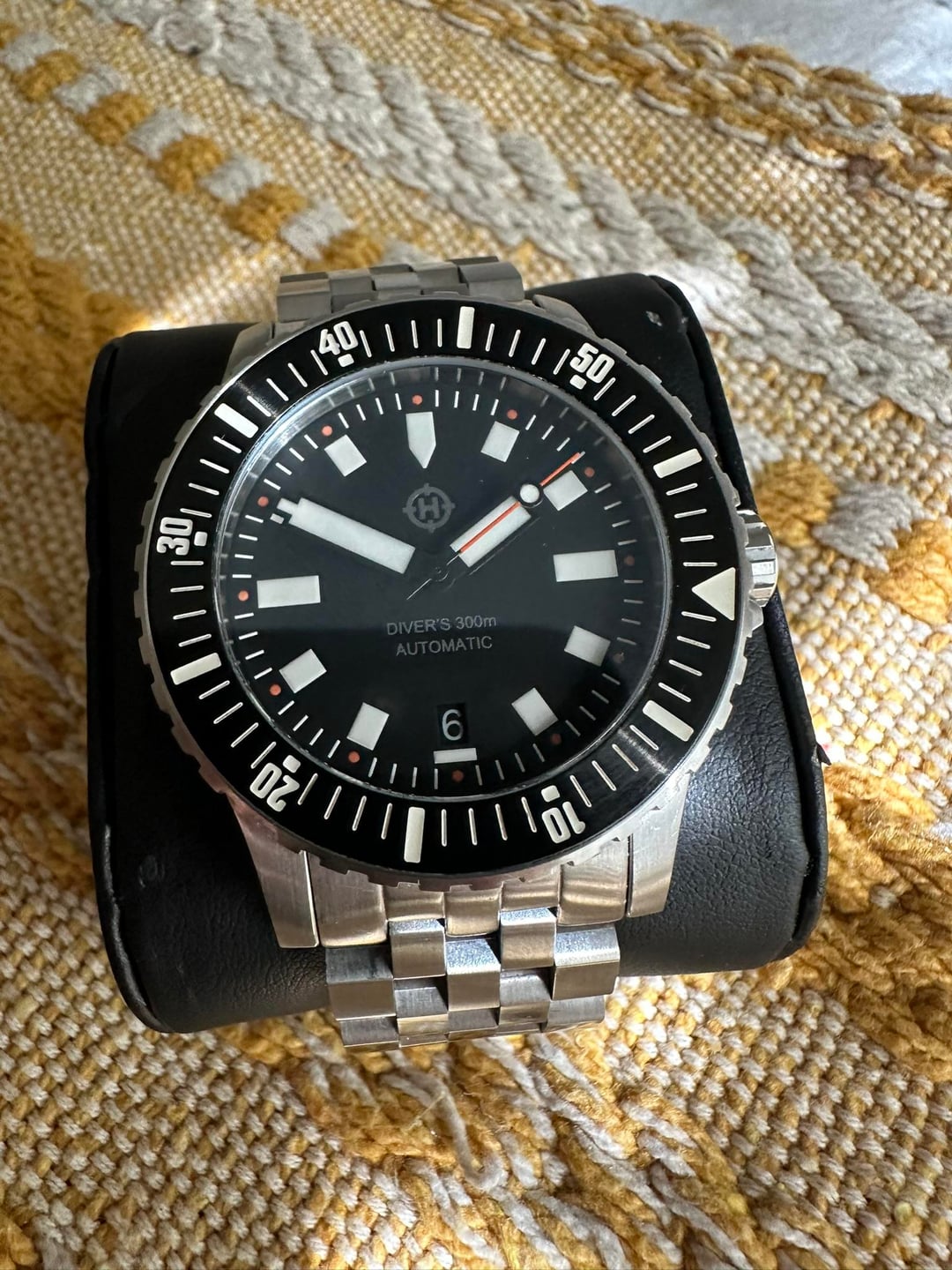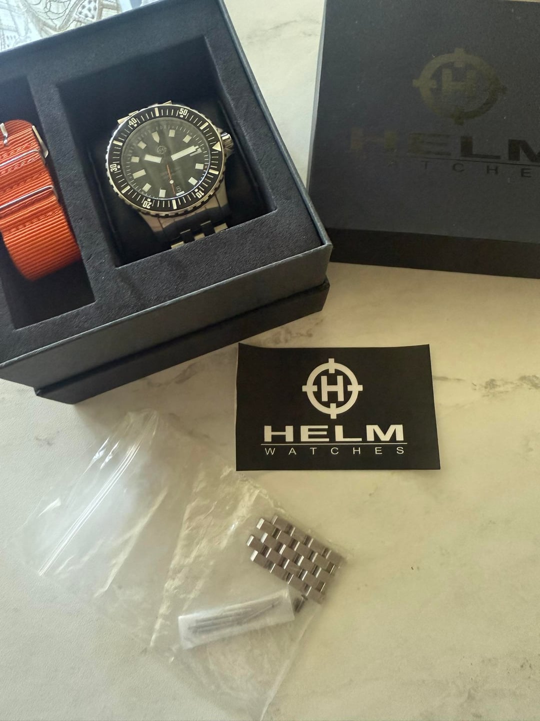 Letting go of my HELM Vanuatu V1 (Stainless Steel). I’ve had it since 2017 and it’s been a favorite, but it’s just not seeing wrist time anymore and I’m moving funds toward my next piece. Comes with everything pictured. This is a **HELM Vanuatu** automatic dive watch in **very good used condition**. The case and bezel show light, normal wear from careful use, but nothing deep or distracting. PLEASE CHECK THE PICTURES! The **sapphire crystal is clean and scratch-free**. The movement runs smoothly and keeps accurate time. This Vanuatu is built like a tank — 300m water-resistant, rock-solid construction, and one of the most respected tool-divers in its price range. Everything functions exactly as it should. A great, reliable everyday or adventure watch. Comes with **everything pictured**: * Original HELM box * Extra stainless-steel links * Extra HELM nylon strap