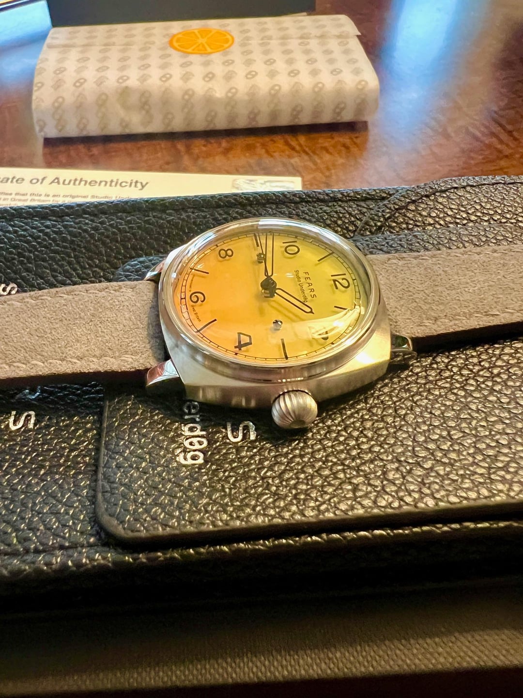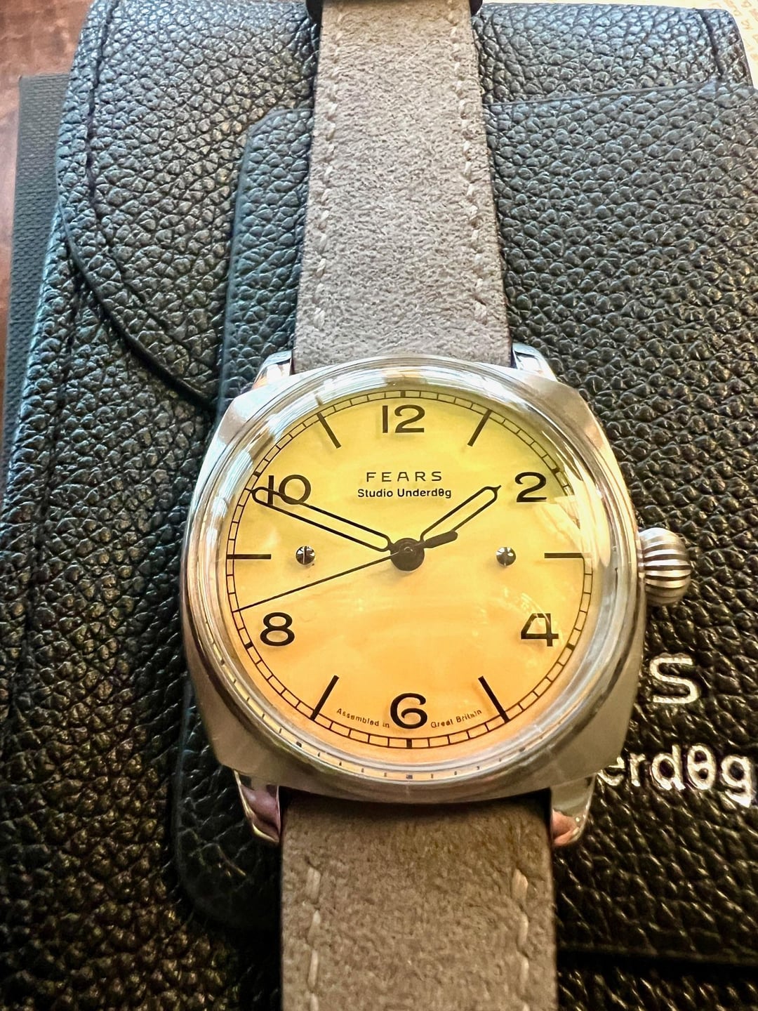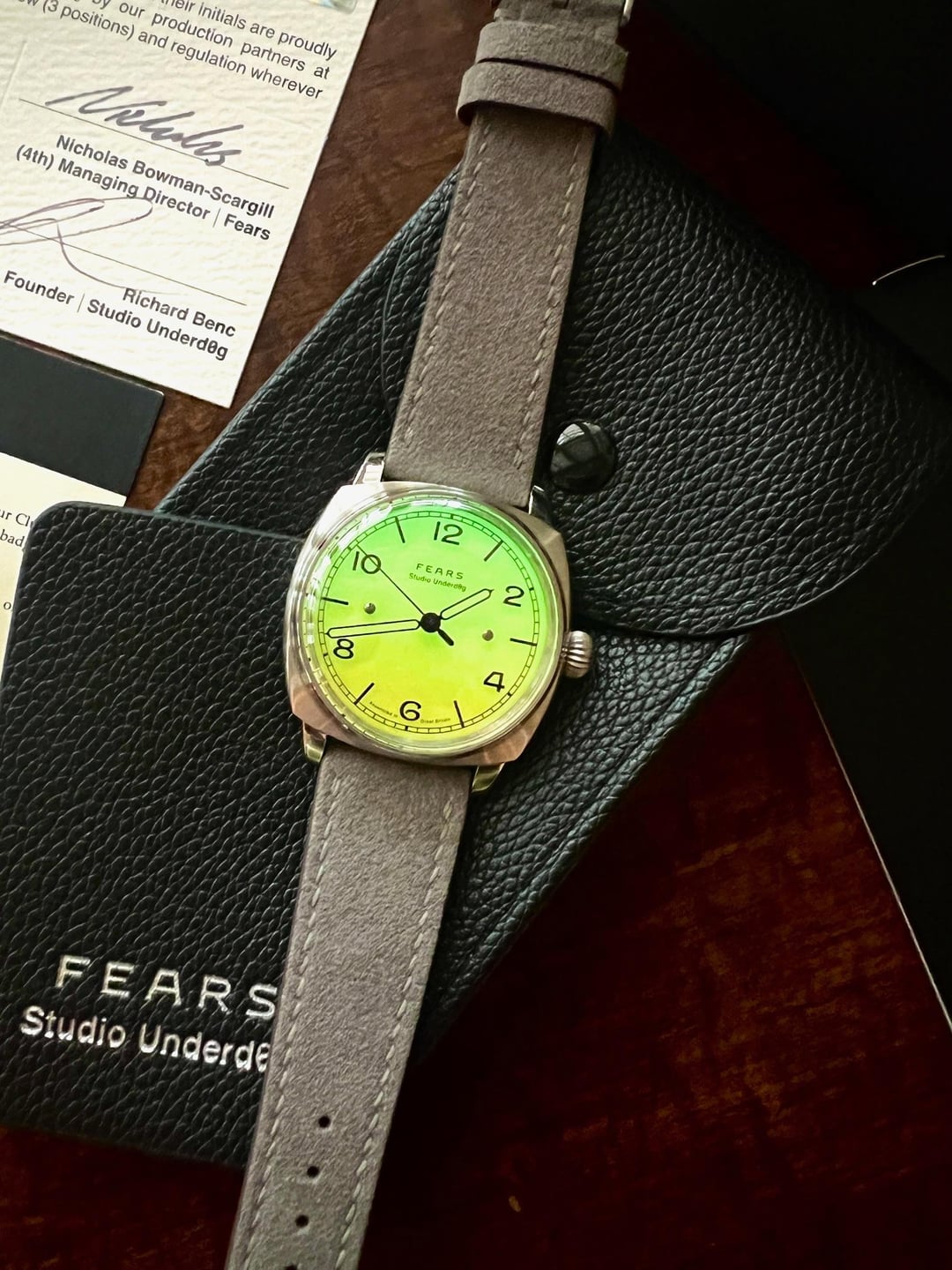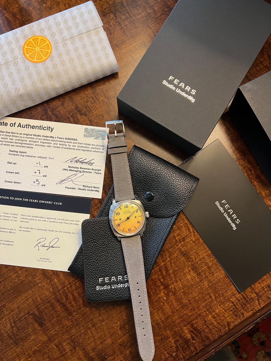 Thank you for your comment, [u/WatchDialOrange](https://www.reddit.com/user/WatchDialOrange/). Your description has been copied below. Fears X Studio Underd0g Underdog “The Mimosa" Brand-New Sold-Out Series. New received from the UK and looks like I am still a Dive watch guy so I will let this one go to someone else to appreciate. I took the plastic off the watch for photos and put the plastic cover back on the watch. The Lume is Amazing for sure the best I have seen! Price is $1699 USA CONUS [Timestamp](https://imgur.com/a/Cdan801) Payment PayPal G&S with 3.5% or PayPal F&F. I will ship insured with tracking and signature For longstanding Reddit Forum watch collectors || || |Model|02SERIES Mim0sa| |Case Dimensions|38mm (D) x 12mm (T) x 43.5mm (LTL)| |Case Material|Stainless steel| |Water Resistance|100 metres| |Crystal(s)|Sapphire front| |Dial|Dual-layer, 3D yellow gradient and sapphire| |Lug Width|20mm| |Strap|Grey Alcantara, steel pin buckle| |Movement|Sellita SW210-1, manual-winding| |Power Reserve|42 hours| |Functions|Hours, minutes, seconds| |Availability| discontinued |