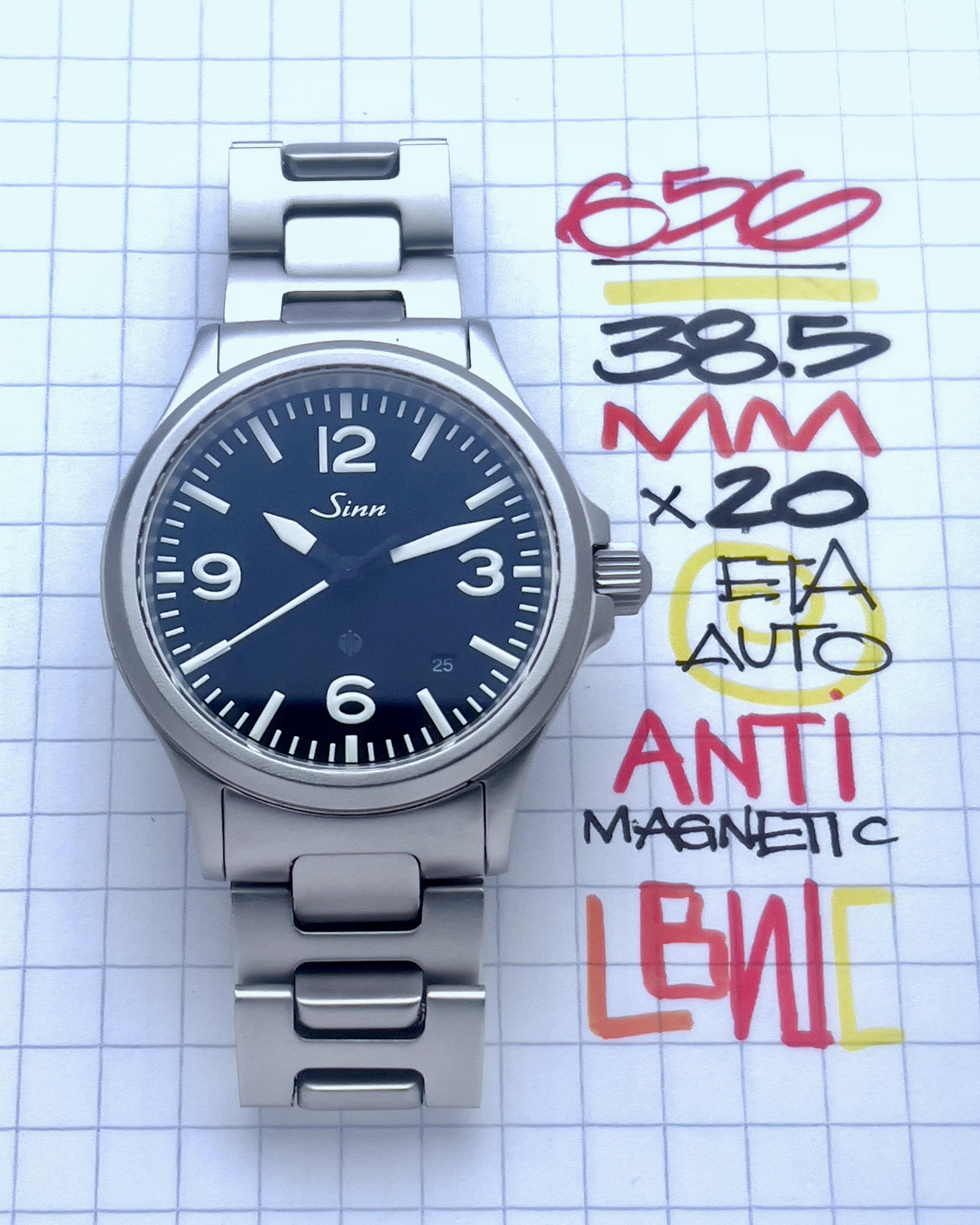 Sinn 656.3945 Sinn Spezialuhren is a highly regarded German watch company known for its focus on extreme functionality, durability, and technological innovation founded in 1961. The 656 is technically a pilot’s watch according to the official site but we also like it as a tough field watch too. This one is excellent condition and appears fully linked and boasts magnetic field protection on the nickel free caseback. The bead blasted stainless steel case has minimal wear and no damage—ETA 2824-2 movement is also running like a champ. The ETA is also one of the easiest automatic movements to maintain. Box and papers: yes from a German ad—no warranty Specifications: 38.5mm case X 20 lug width X 46h X 10.7cc with sapphire crystal Videos: https://drive.google.com/drive/folders/1mU4UzSW5ydfl9alVjP3n5RKE9XZjwdAM?usp=share_link Box and papers: yes from a German ad—no warranty * Video is the best way to view the watch if in-person test drive is not available. Due to the different characteristic of the cameras and gadgets used, the color of the watch you purchase may not be the same as shown on this website or on our Instagram. * will consider trades that make sense but please consider time, shipping, and trade value—not market. - local special: can possibly accommodate at ButterScotch in Downtown Long Beach by appointment - All sales final unless the watch is misrepresented or lost in transit (always fully insured) - Link to [feedback here](https://www.reddit.com/r/WatchExchangeFeedback/search?q=soycowboy&restrict_sr=1&sort=new) & [watchcharts here](https://watchcharts.com/repcheck/user/soycowboy?source=reddit&type=feedback) Asking a *negotiable* **$1650** via bank wire, Zelle, venmo, or possibly Apple-pay with super strong references or if I know you. Price includes fully insured Fedex shipping in the USA— hand delivery in long Beach with drinks or coffee on me ;).