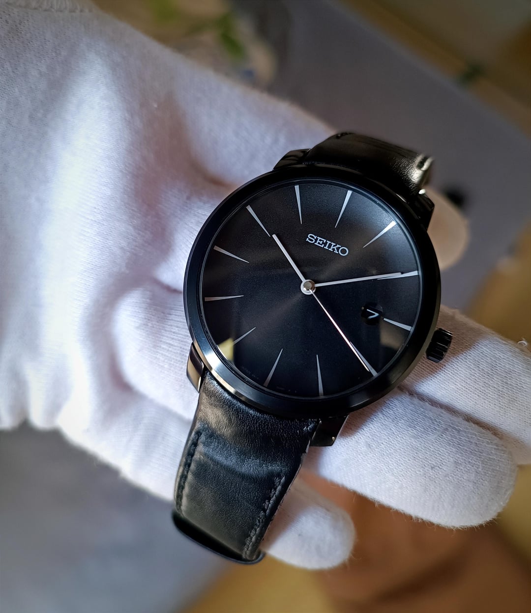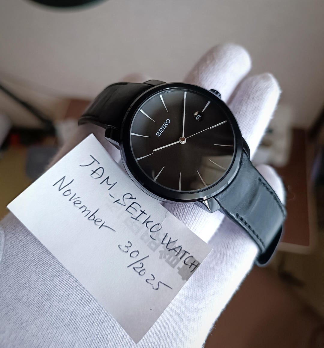 Hello r/watchexchange, I’m offering for sale the Seiko SCBS003 Moving Design Collection 6R15-00R0, a rare and special release from Seiko’s domestic Japanese market in 2007. This watch features a full black ion-coated stainless steel case with a unique concave black dial, giving it a refined and vintage-inspired look. It comes on the original Seiko leather strap with matching black ion-coated deployant clasp. The watch was purchased for collection purposes and has been very sparingly worn. Condition remains excellent. --- Product Details: Condition: Excellent, carefully preserved, very lightly used. Case Size: 41mm Movement: Seiko 6R15, running accurately with a deviation of approx. -15 to +25 seconds/day. Dial, Hands, Markers: Nearly perfect, featuring the rare concave black dial – a striking and collectible design. Crystal: Scratch-free, in flawless condition. Strap: Original leather strap with deployant clasp, in excellent condition, fits wrists from ~15cm to 20.5cm. This is a true collector’s piece in great condition, well-maintained, and rarely seen on the market. Included: Everything shown in the pictures. 📸 Pictures / Timestamp: included in the post --- Price, Payment & Shipping: Price: $580 (shipping not included), no trades. Payment: PayPal Friends & Family or Goods & Services (+4.6% PayPal fee). Shipping: FedEx Express, worldwide delivery in 2–3 days, shipping cost $50–$80. --- Thank you for your interest! 🙏